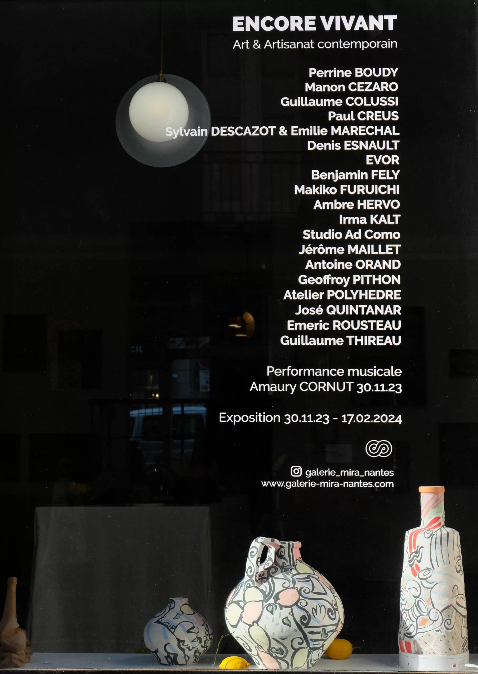 Exposition collective Perrine BOUDY Manon CEZARO Guillaume COLUSSI Paul CREUS Sylvain DESCAZOT & Emilie MARECHAL Denis ESNAULT EVOR Benjamin FELY Makiko FURUICHI Ambre HERVO Irma KALT Jérôme MAILLET Studio Ad Como Antoine ORAND Geoffroy PITHON Atelier POLYHEDRE José QUINTANAR Emeric ROUSTEAU Guillaume THIREAU