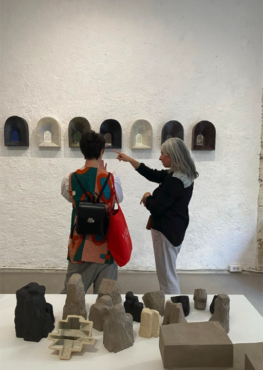 Hélène Delépine est née à Pont-Audemer en 1987 et a grandi en Normandie. Après des études en céramique à l’Ecole Supérieure des Métiers d’Arts d’Arras jusqu’en 2009, elle a poursuivi son cursus en design et en art à l’Ecole Nationale Supérieure d’Art et de Design de Limoges où elle a été diplômée en 2013. Après plusieurs années passées en Limousin, elle s’est installée à Nantes où elle vit et travaille depuis 2018. En 2021, ses oeuvres ont été montrées à l’occasion d’une exposition monographique à l’Abbaye Saint-André, centre d’art contemporain de Meymac. L’artiste a été invitée par le FRAC des Pays de la Loire, le département de Maineet- Loire et la commune de Loire-Authion pour une résidence et une exposition personnelle à la galerie Hors-Champ en 2022. L’artiste fait partie du programme de résidence Entre les murs de l’Abbaye Royale de Fontevraud. Son projet, une architecture funéraire monumentale, a été présenté dans les jardins de l’abbaye durant l’été 2023. A l’automne 2024, l’artiste a été invitée par le Centre d’art contemporain du Pays d’Ancenis Le MAT à présenter son travail dans le cadre d’une exposition itinérante dans trois communes du nord du département de Loire-Atlantique. En parallèle, elle a mené une résidence de création en Corrèze au sein d’une entreprise spécialisée dans la recherche et production de faîtages. Ce projet a été réalisé dans le cadre du dispositif Art et Mondes du travail initié par le Ministère de la Culture, sur une invitation du Centre d’art contemporain de Meymac, de la DRAC Nouvelle Aquitaine, en partenariat avec l’entreprise Tegulys et le Tiers-lieu Au Beau MilLieu. Fin 2024, Hélène DELÉPINE reçoit le Prix des Arts Visuels de la Ville de Nantes et son travail sera présenté pendant le Voyage à Nantes durant l’été 2026.