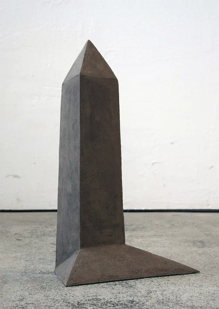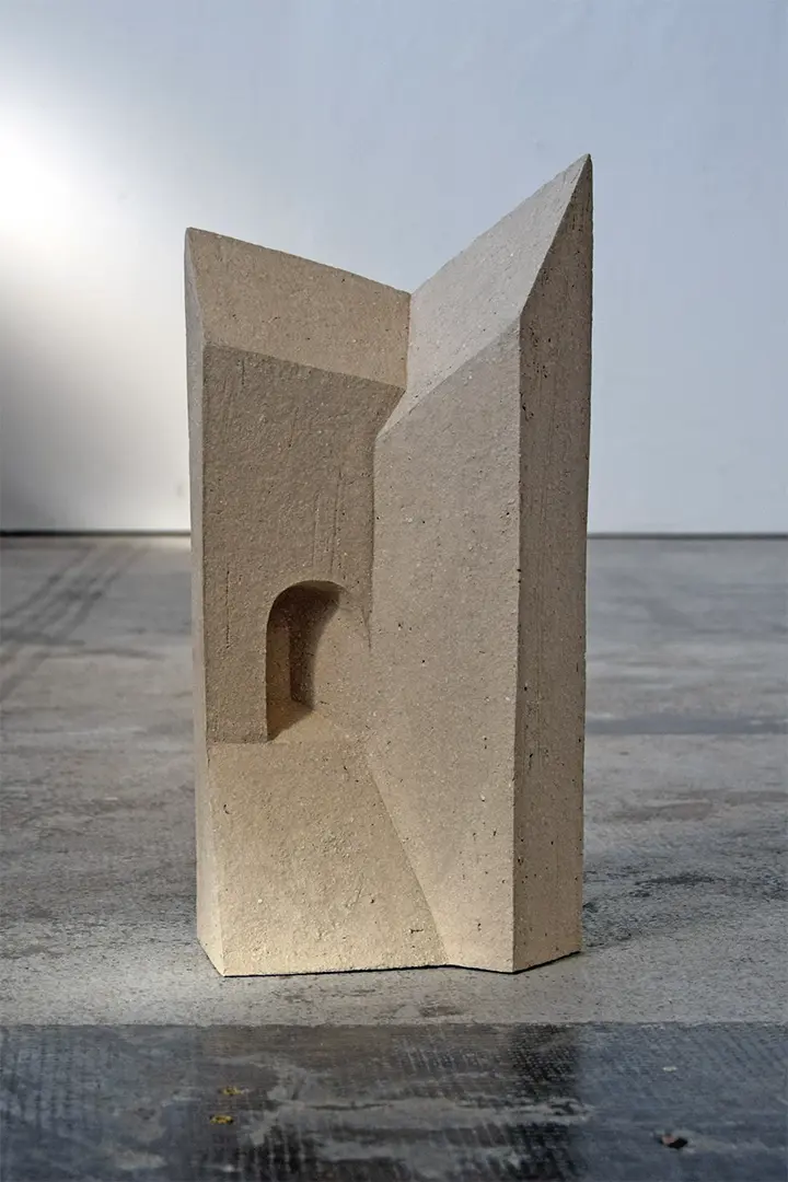 » Mon travail est un jeu de construction fait d’expériences de combinaisons qui fonctionne par le déplacement, l’abstraction, l’usage du signe et de l’indice. Il se situe dans un cheminement qui explore les points de vue et les rapports d’échelle. Il interroge la permutation du réel et de notre imaginaire en mêlant l’architecture à l’objet, le passé au futur, l’essor au déclin. J’opère selon des principes de dualité et de contradiction qui traduisent une tension et permettent d’amorcer une réflexion ou un questionnement. Je souhaite instiller un doute dans ce qui est donné à voir et révéler le potentiel fictionnel du réel, lui empruntant un répertoire de formes et d’images ayant une capacité à s’abstraire afin d’élaborer un vocabulaire formel simple et essentiel. J’aime l’idée chère au grand architecte et designer Ettore Sottsass de transformer le banal en potentiels archétypes mythiques.