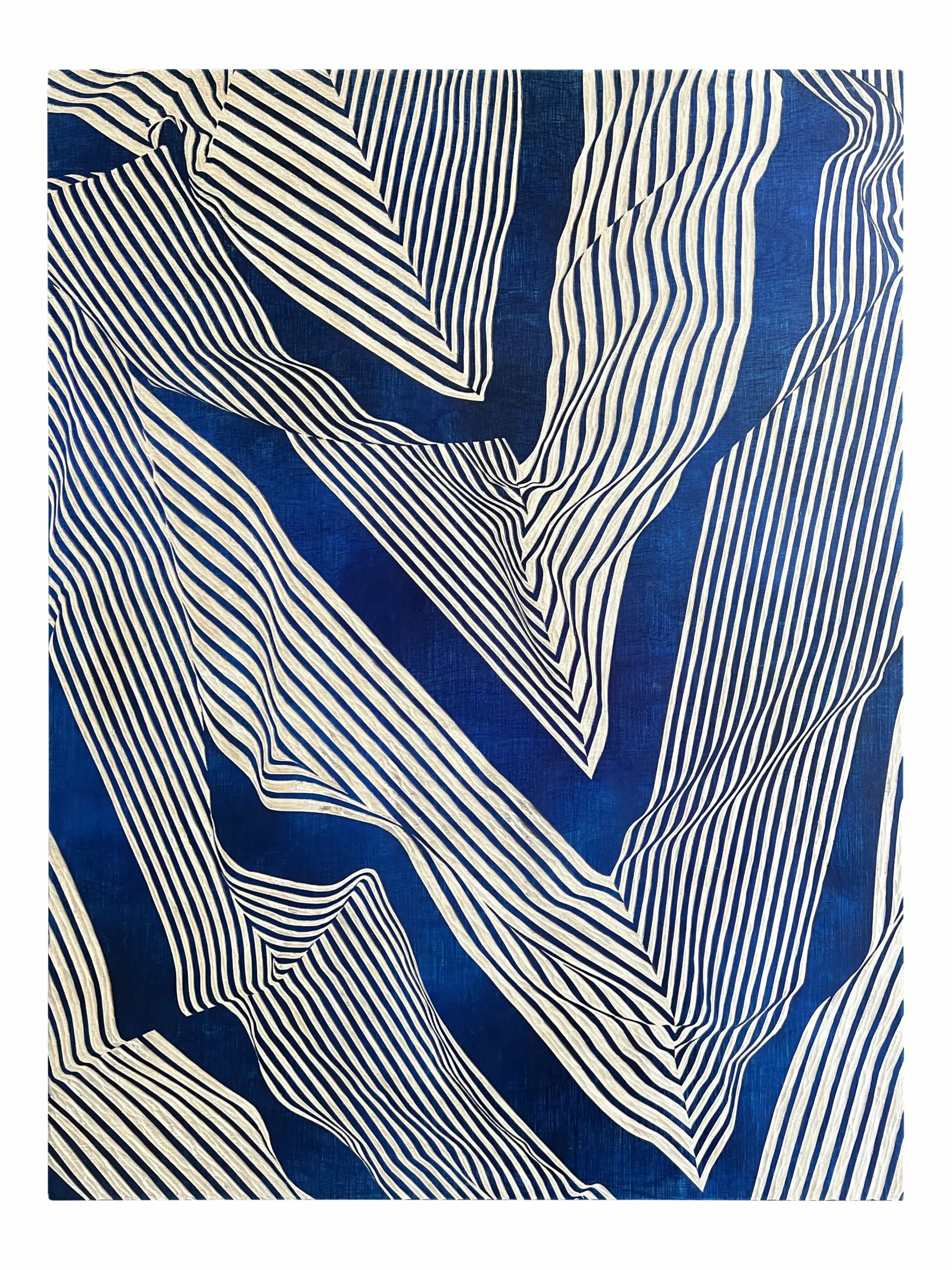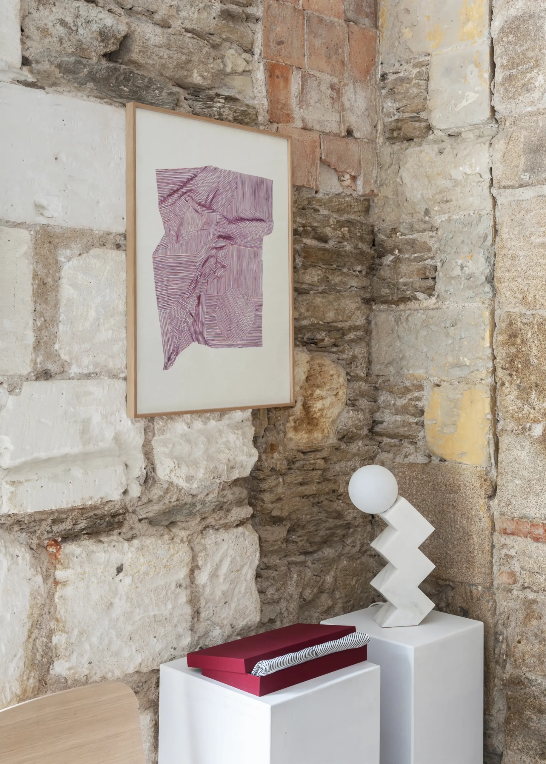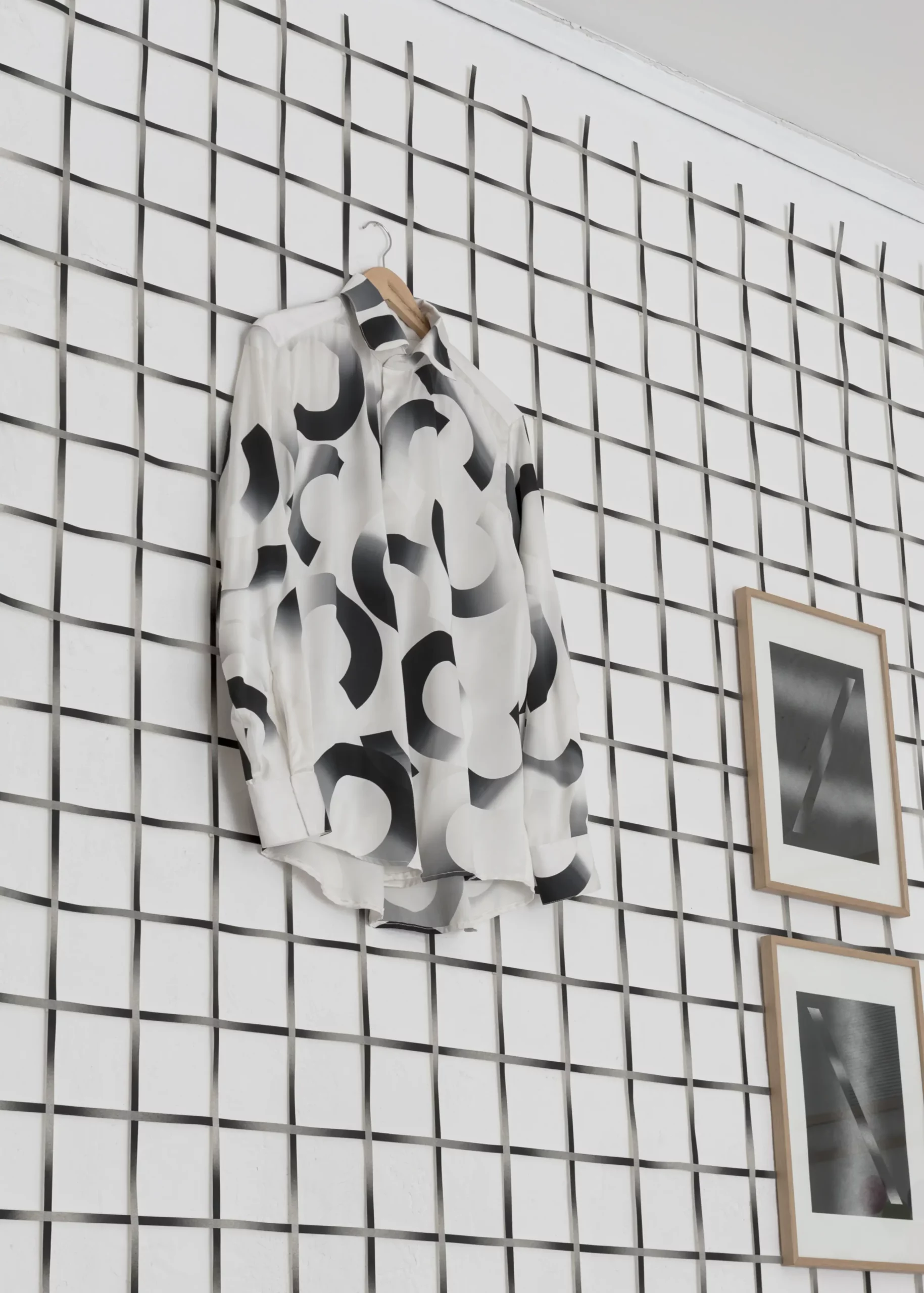 Pour Irma Kalt, tout est de passage. Du maillage ajouré de bandes entrecroisées aux plis sensuels d’une étole de soie imprimée de plis, l’œuvre trace des lignes et réfléchit leur trajectoire.