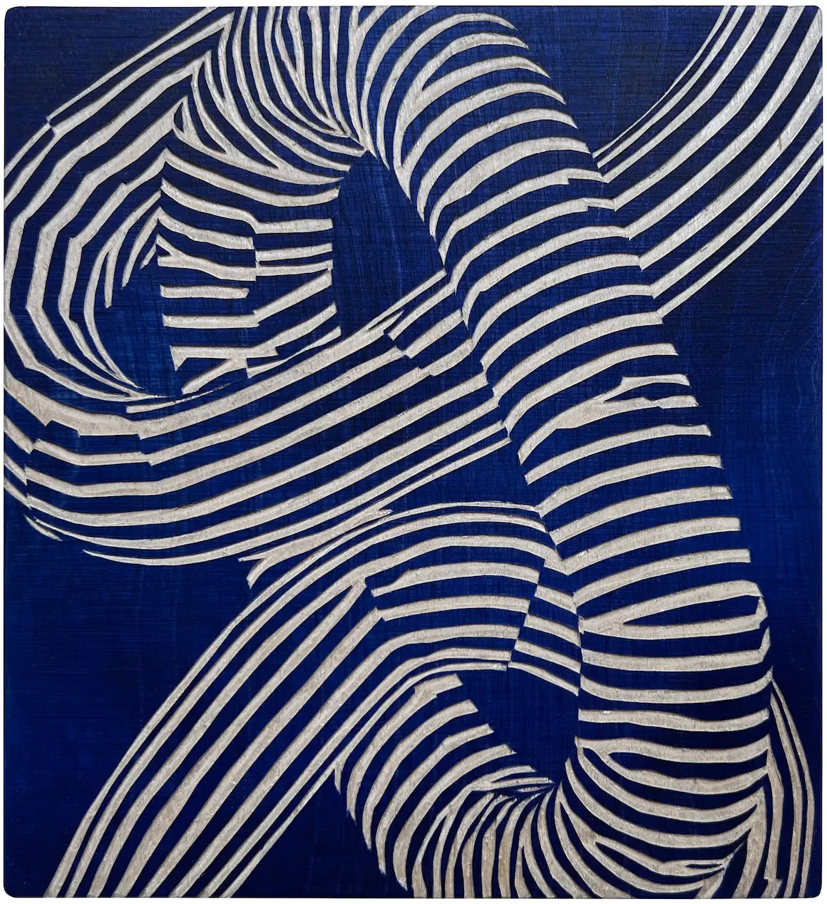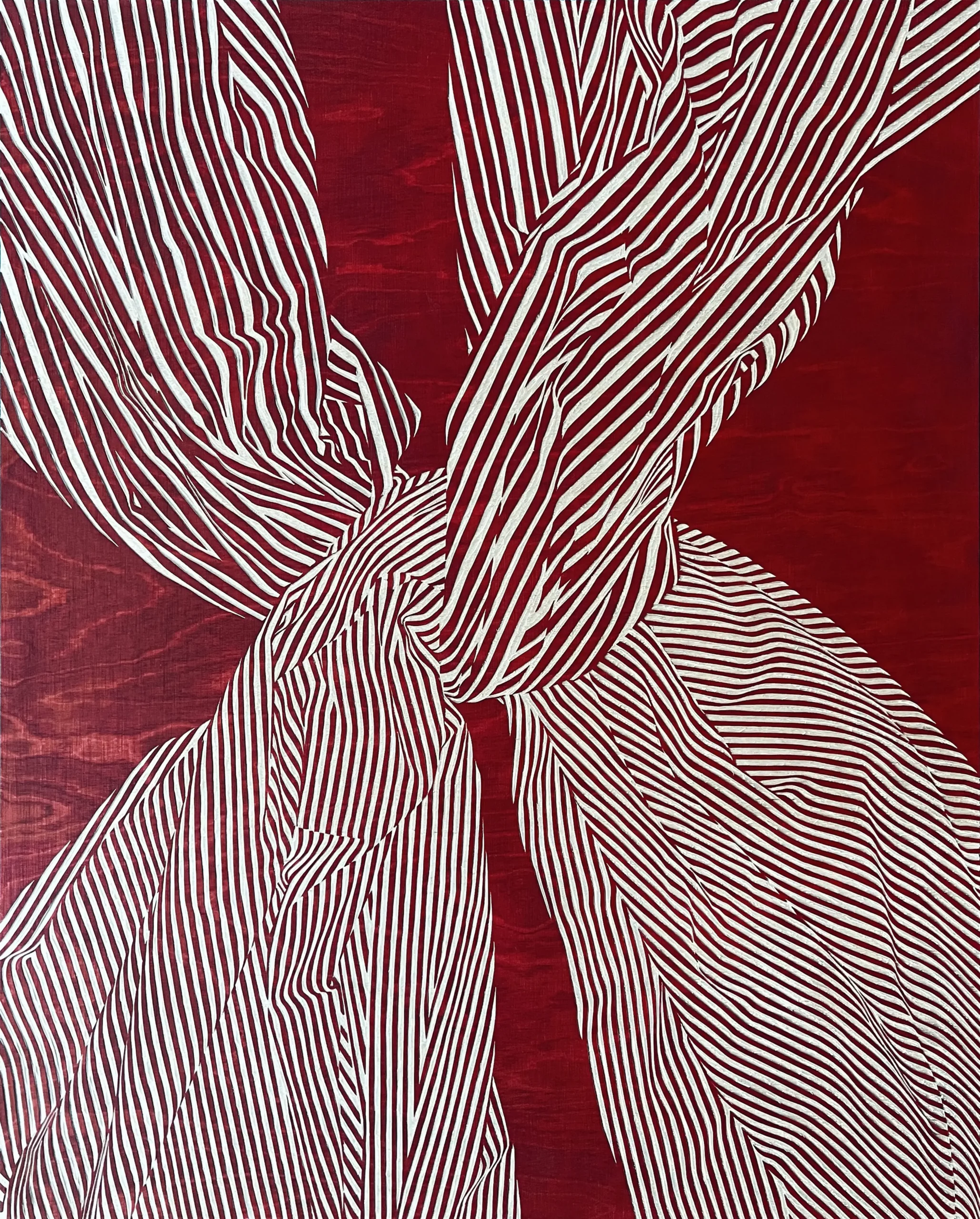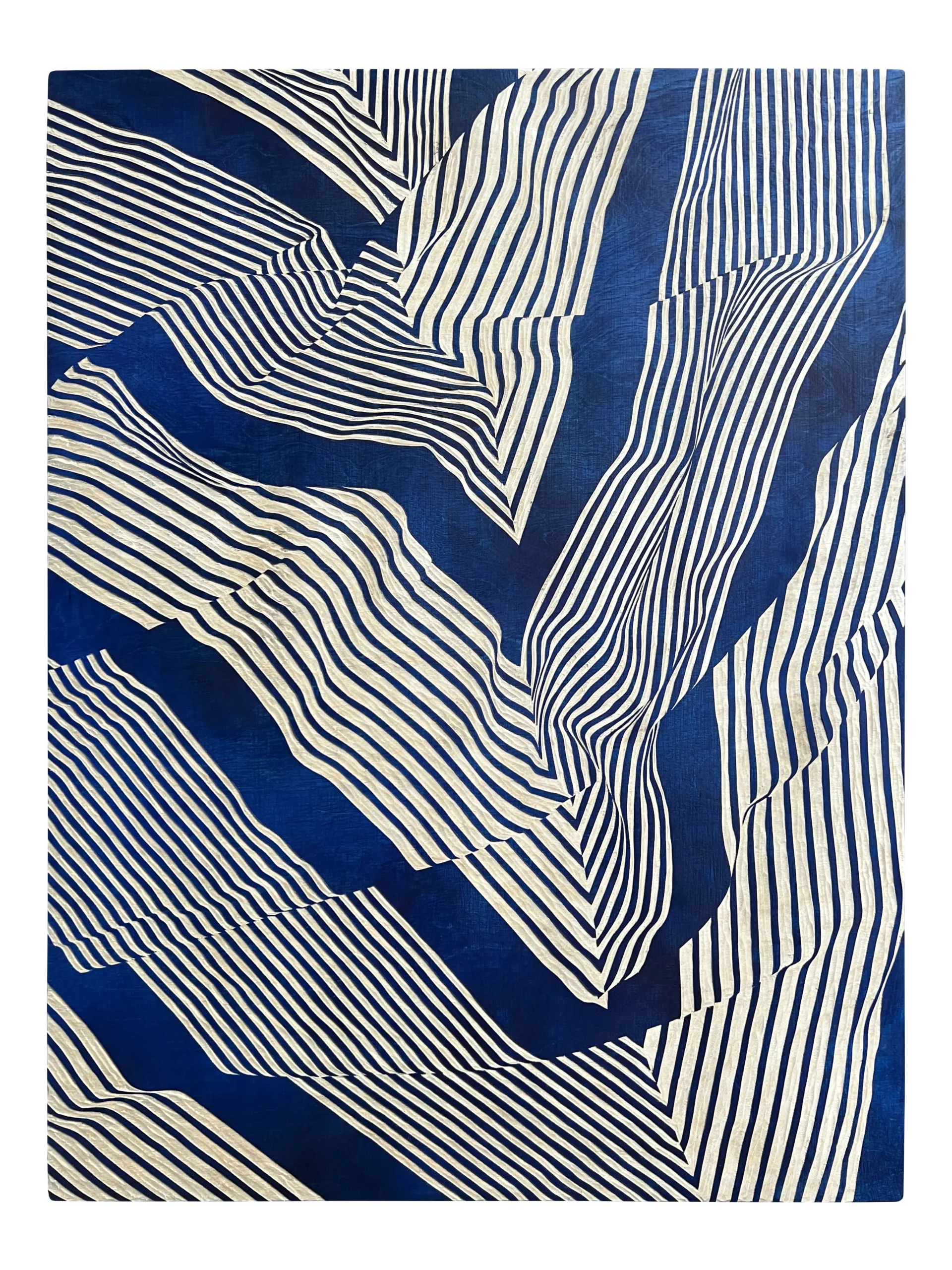 Pour Irma Kalt, tout est de passage. Du maillage ajouré de bandes entrecroisées aux plis sensuels d’une étole de soie imprimée de plis, l’œuvre trace des lignes et réfléchit leur trajectoire.