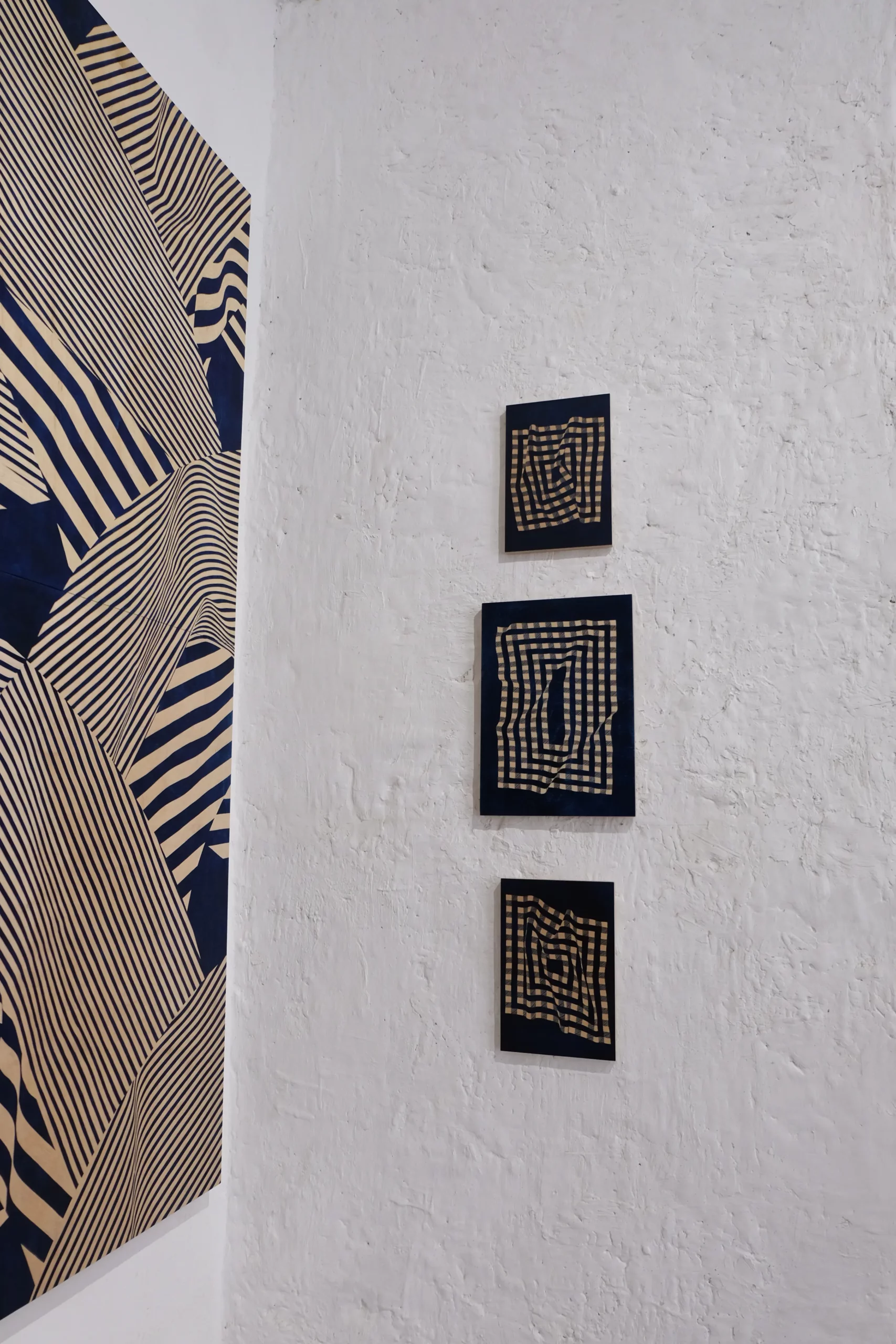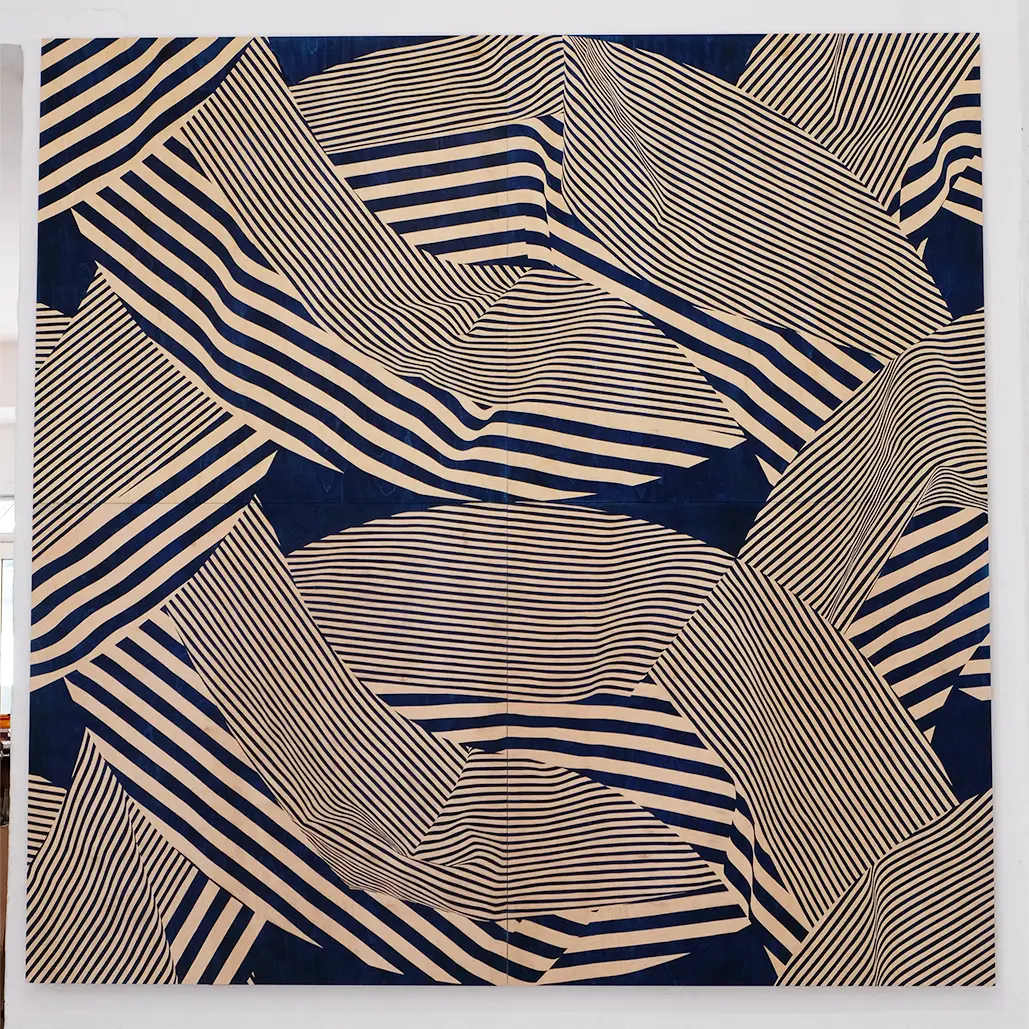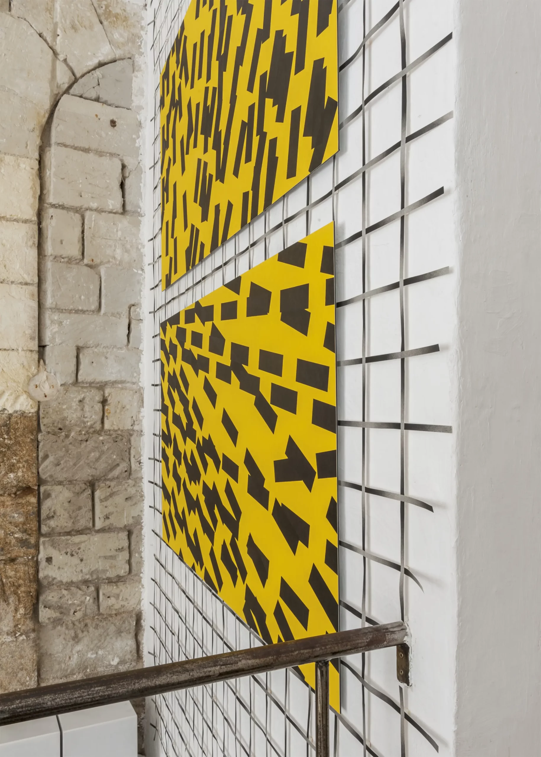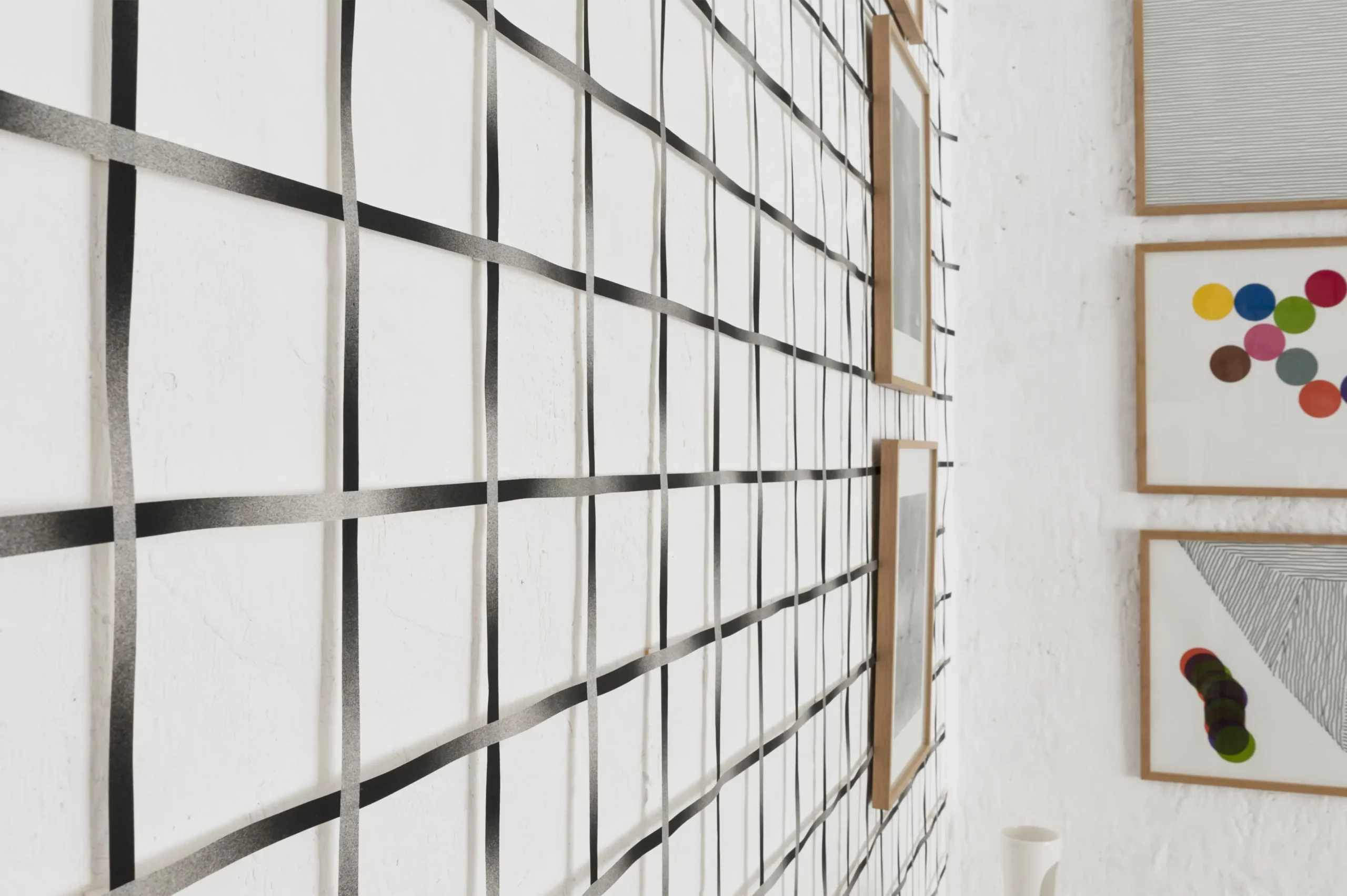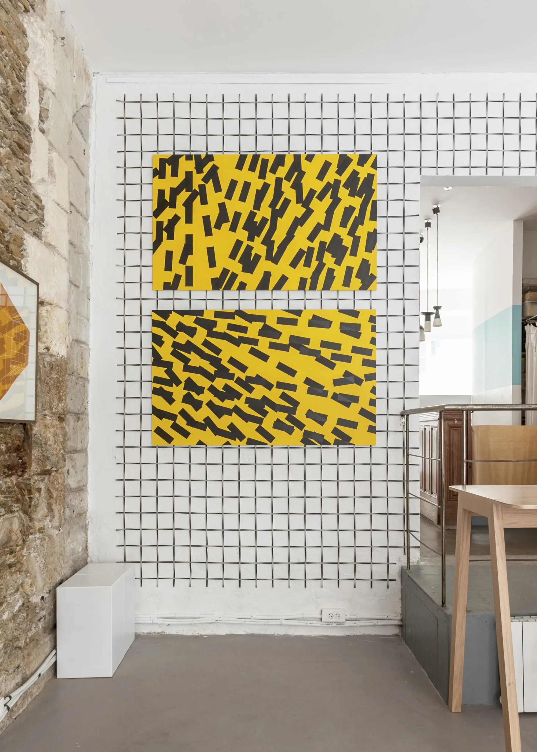 Son travail s’articule essentiellement autour d’un fort intérêt pour la ligne et le motif. Elle joue des probabilités infinies qu’offrent les motifs. Rayures, quadrillages et géométrie, sont autant d’outils qui permettent à l’artiste de parler d’espace tout en élaborant un vocabulaire de formes.