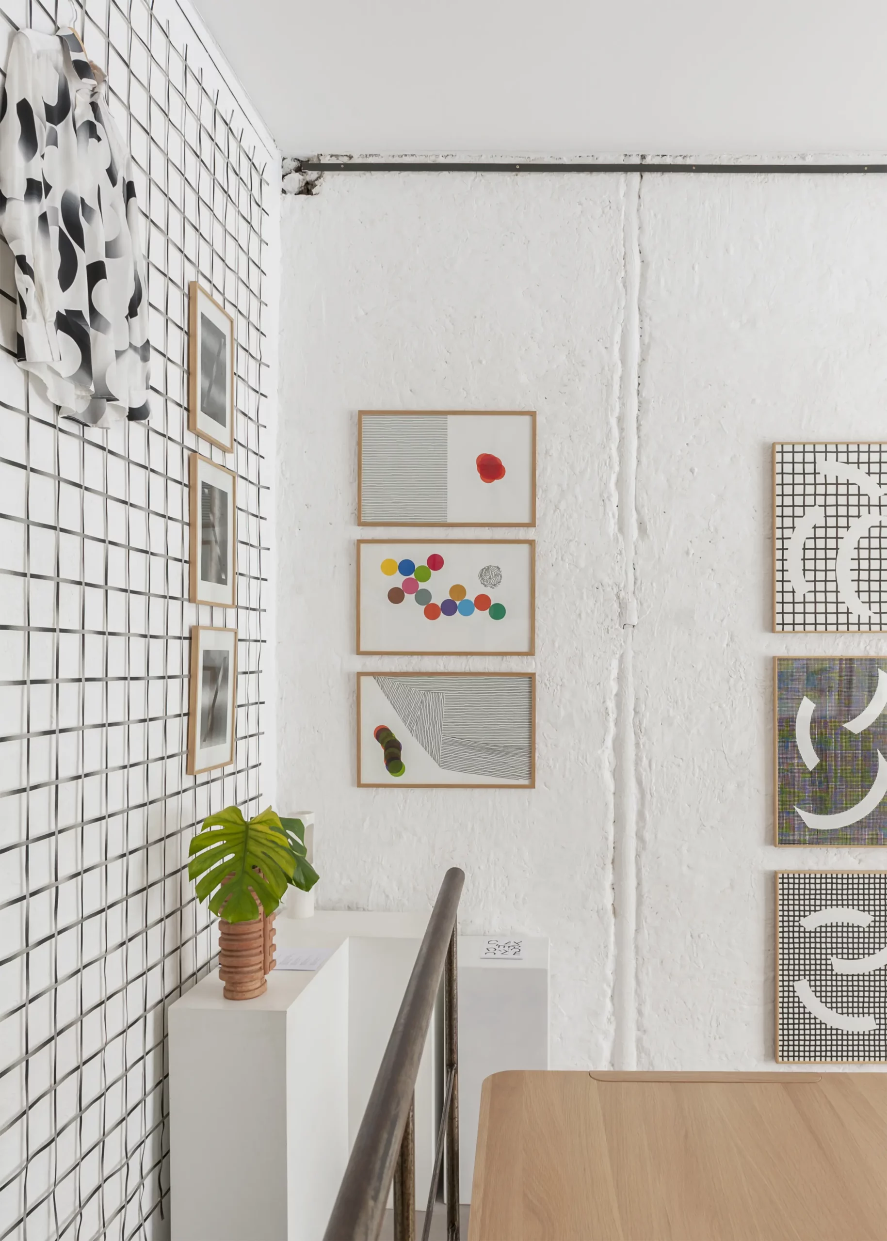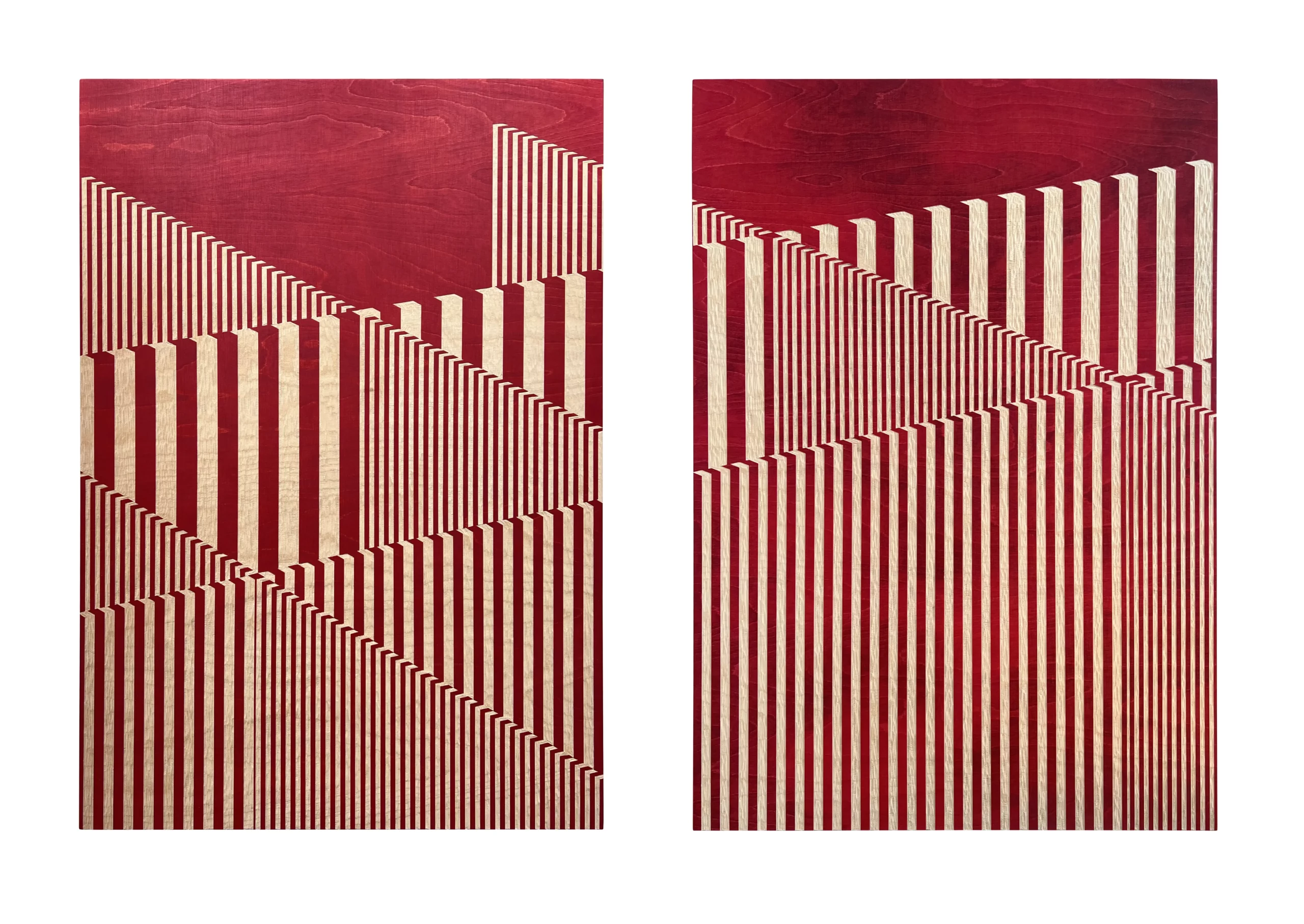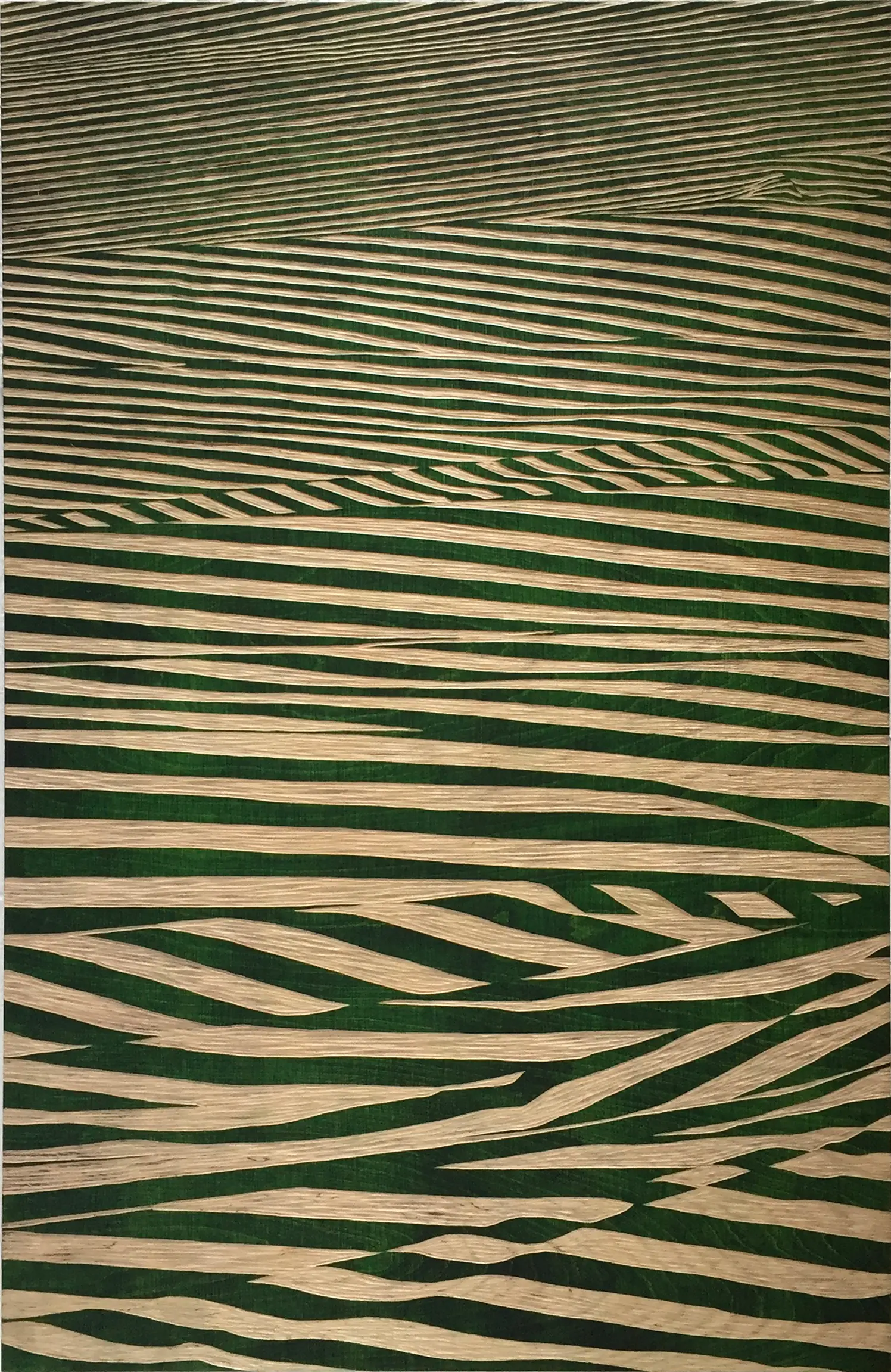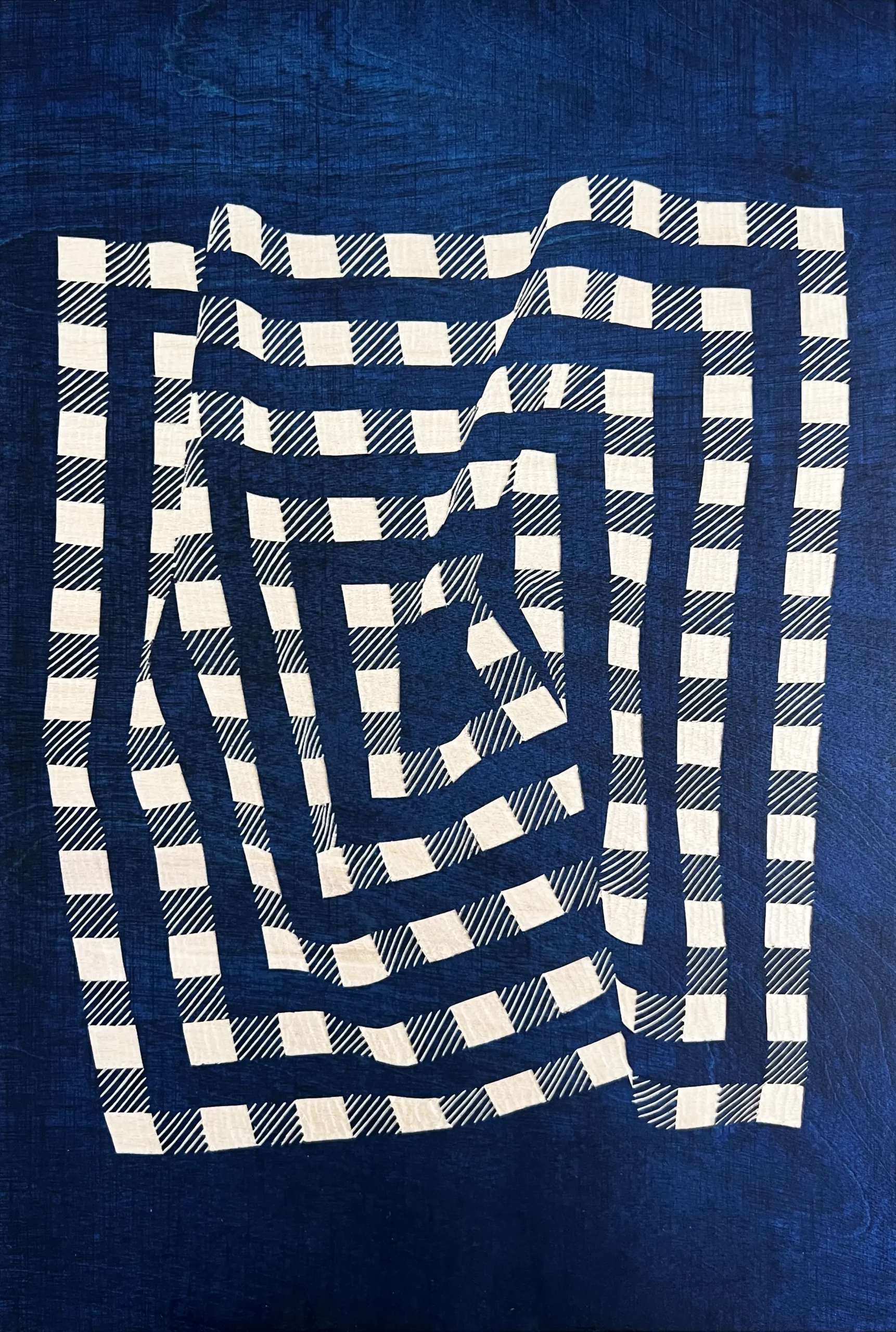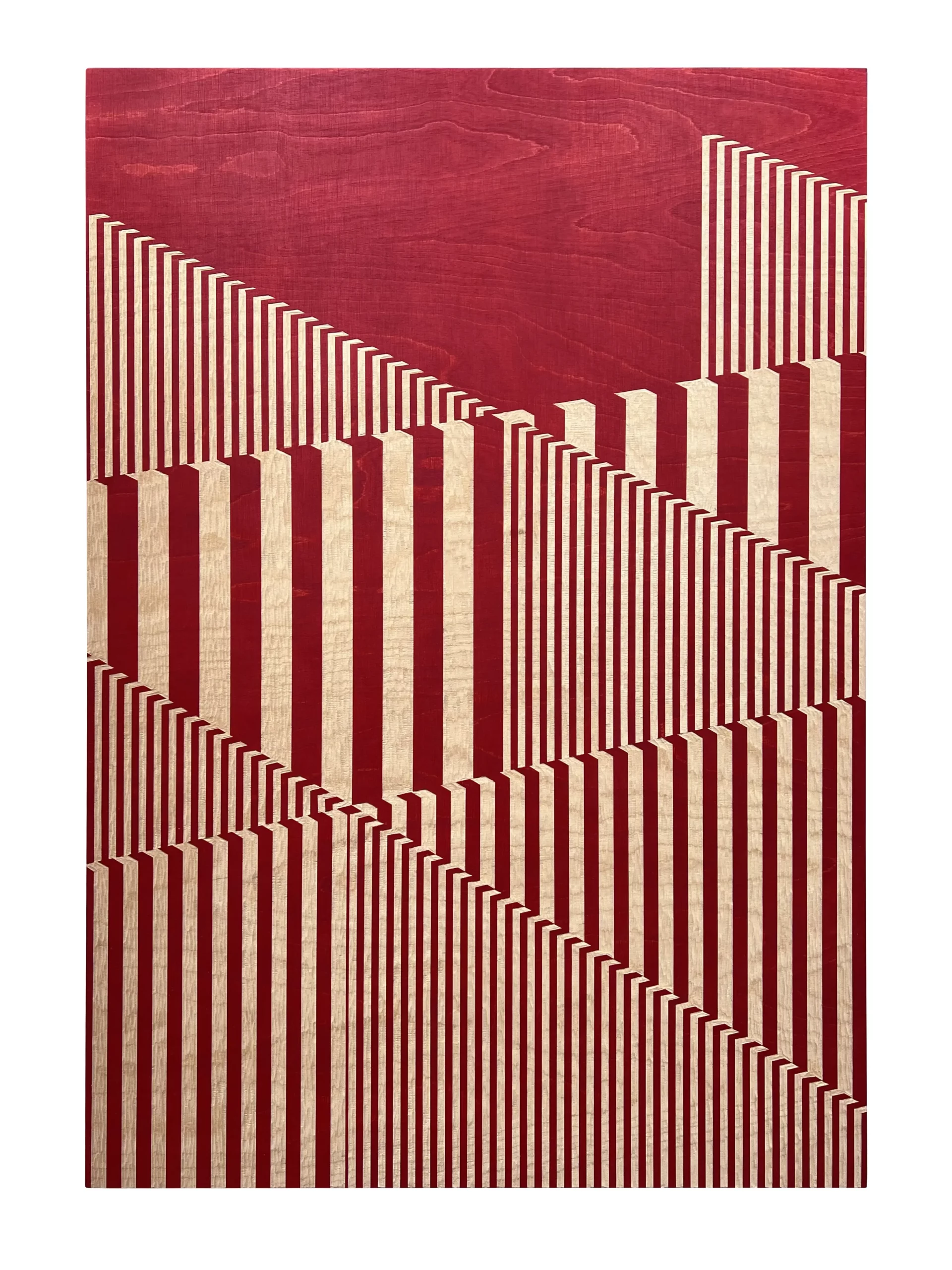 Son travail s’articule essentiellement autour d’un fort intérêt pour la ligne et le motif. Elle joue des probabilités infinies qu’offrent les motifs. Rayures, quadrillages et géométrie, sont autant d’outils qui permettent à l’artiste de parler d’espace tout en élaborant un vocabulaire de formes.