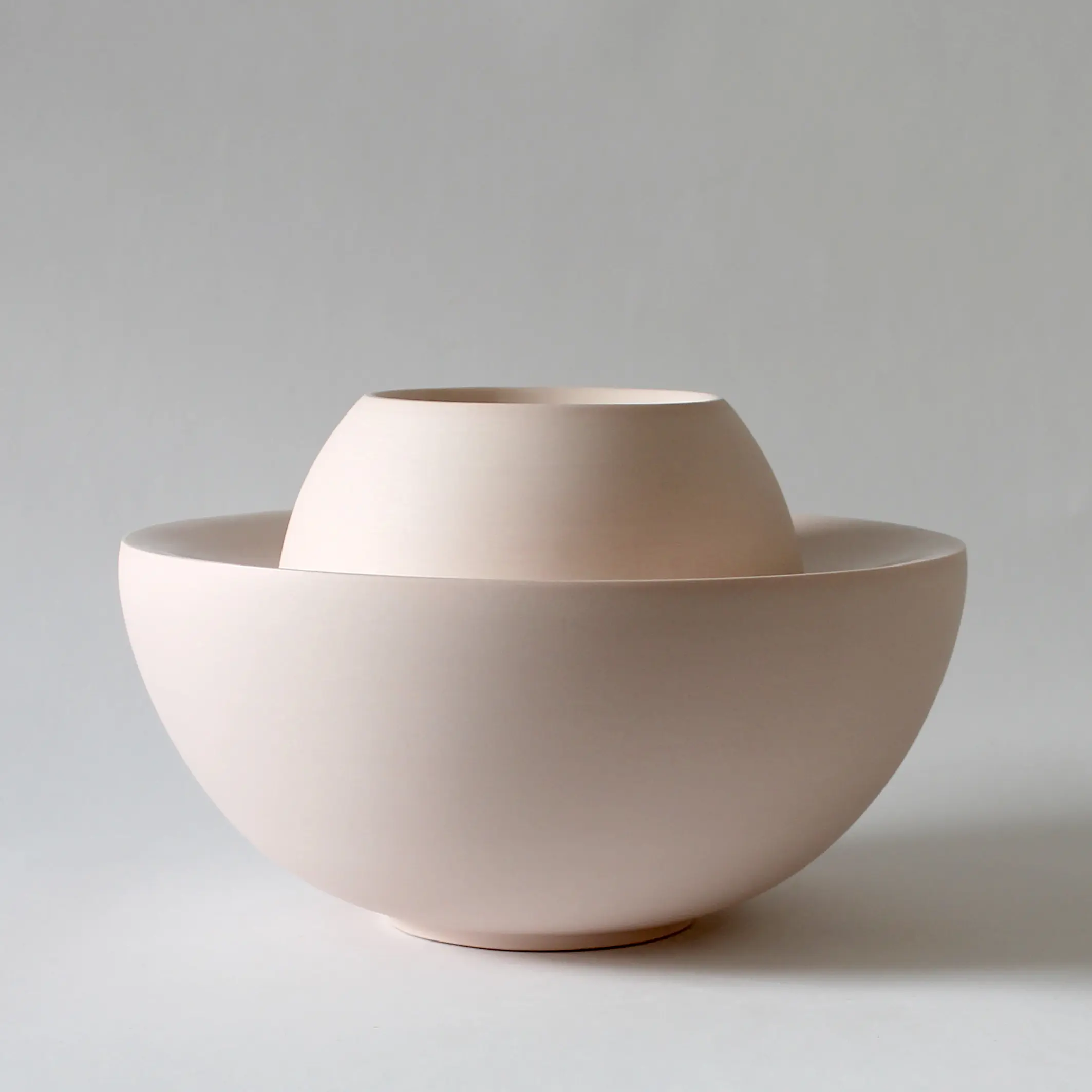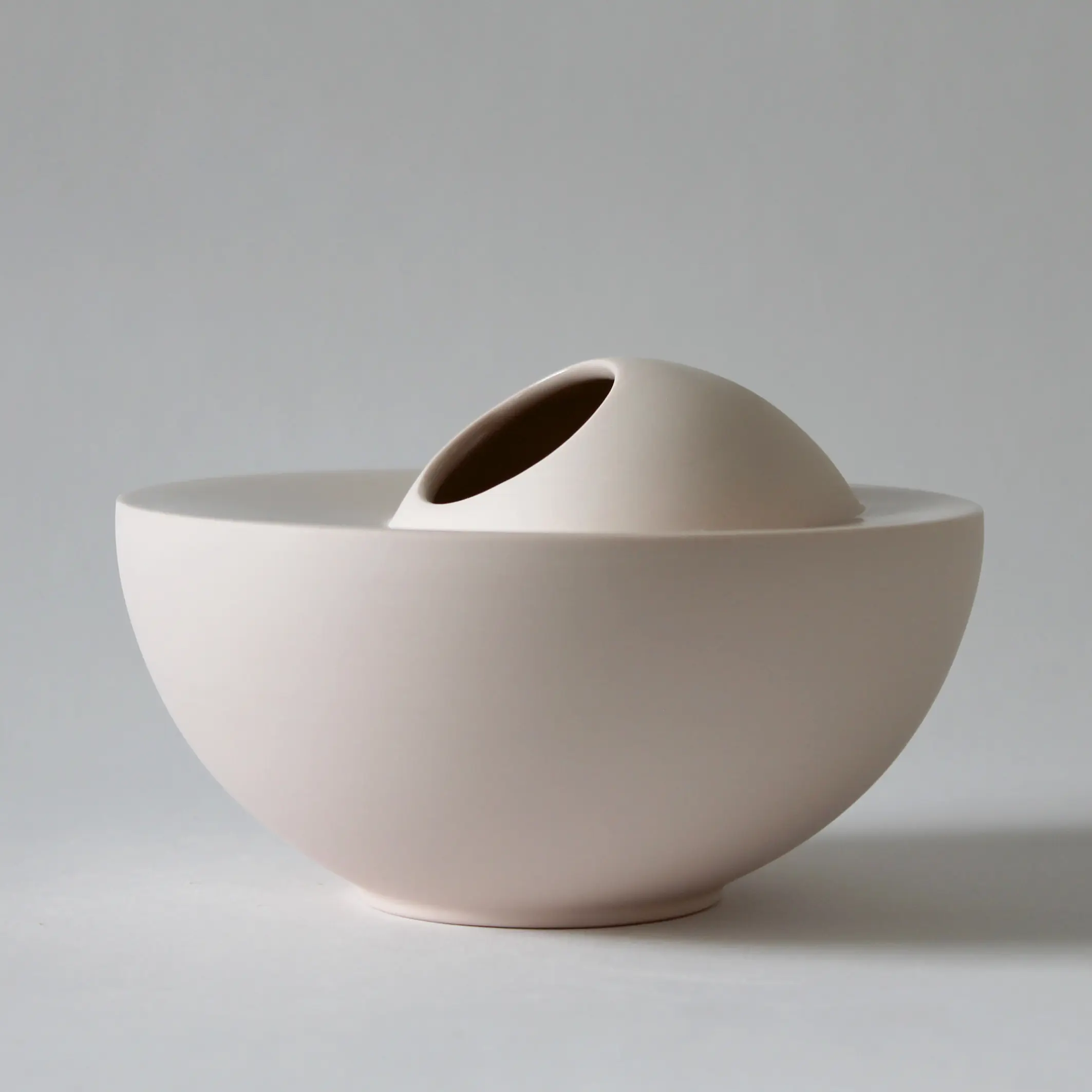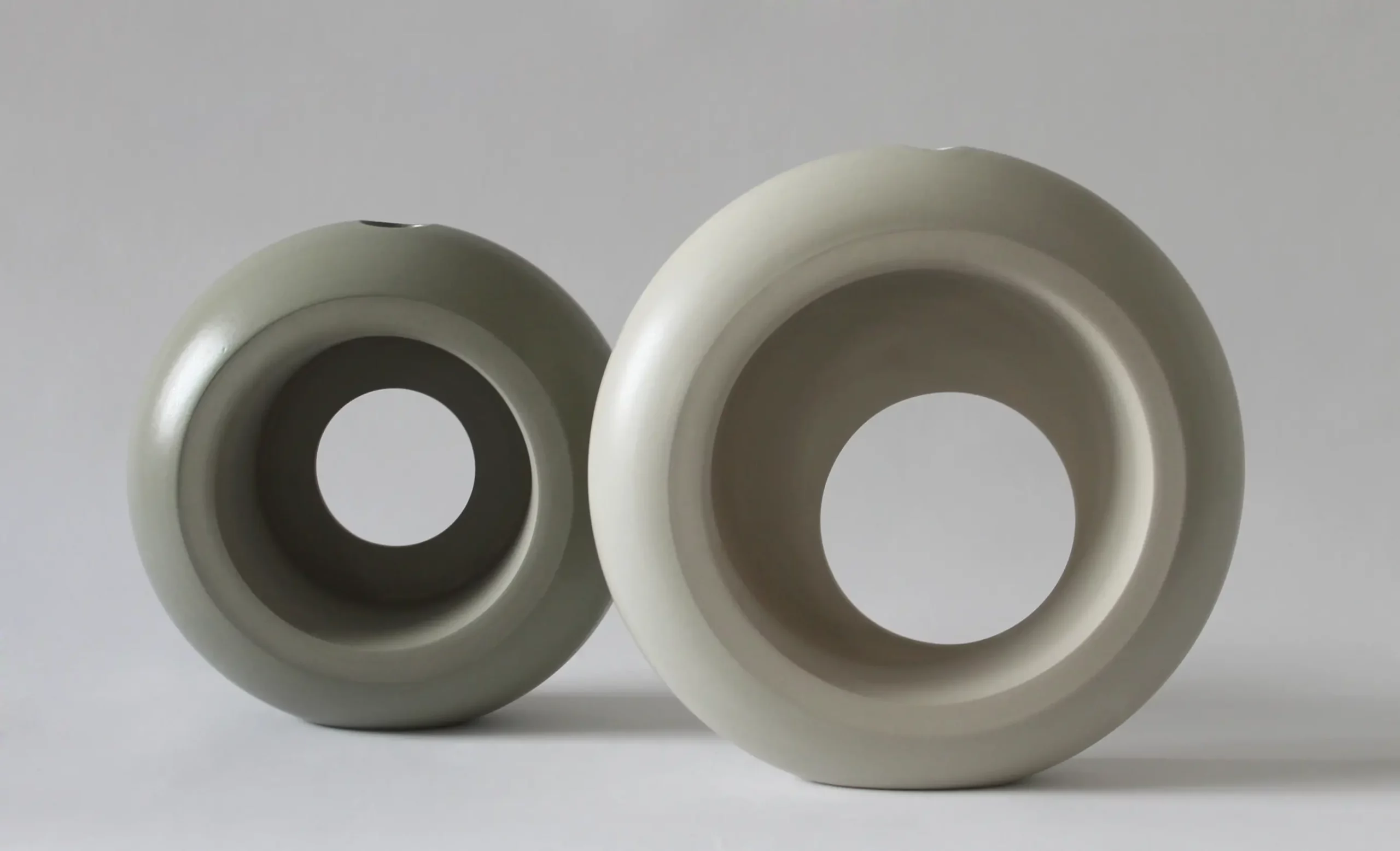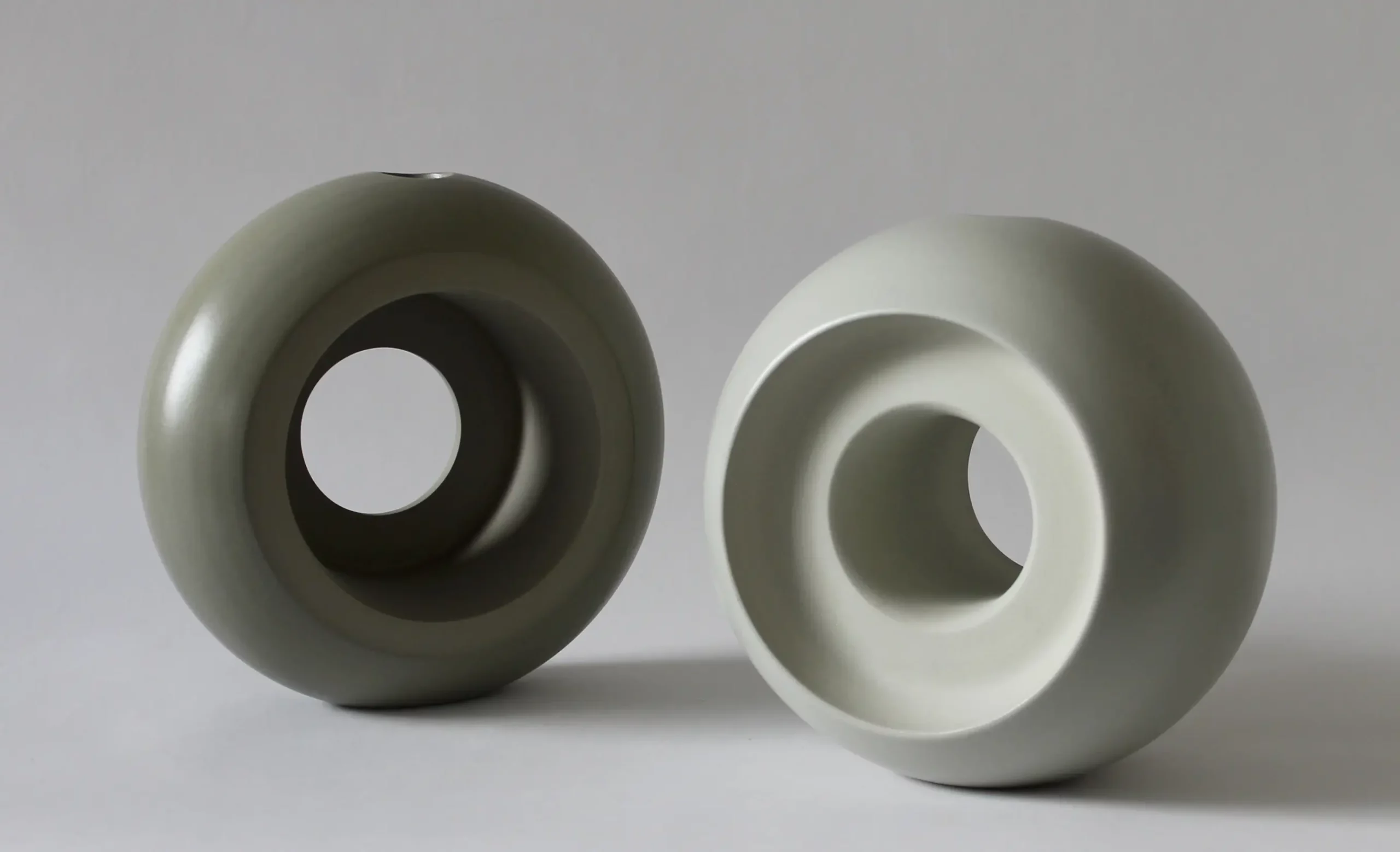 En grès teinté dans la masse et émail satiné, à l’aspect lisse et au toucher tout doux, la série ORBE témoigne du talent renouvelé de la céramiste.