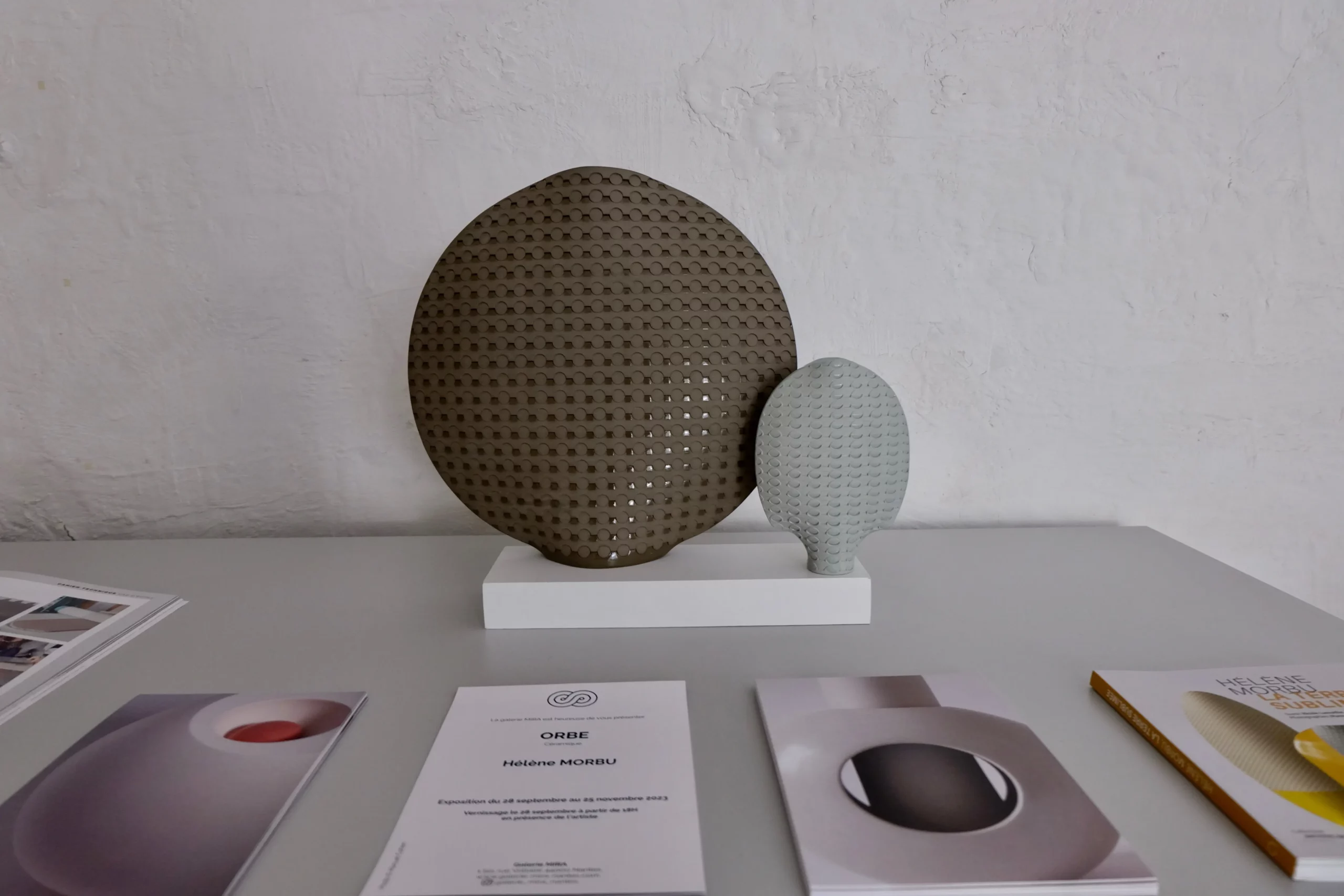 Puis en 2019, elle est Lauréate du Prix le créateur de la Fondation Ateliers d’Art de France, et réalise l’exposition de ses rêves « Hyperborée » au Palais Art déco de sa ville natale en 2021. Elle y présente des pièces uniques sous forme d’installation en écho à l’architecture et aux décors du Palais. Pour la préparation de cette exposition d’envergure elle a été assistée par Sandrine Moysan, qui travaille depuis au sein de son atelier. A cette occasion les Éditions Ateliers d’art de France édite la monographie « Hélène Morbu, la terre sublimée », ouvrage disponible à la Galerie MIRA.