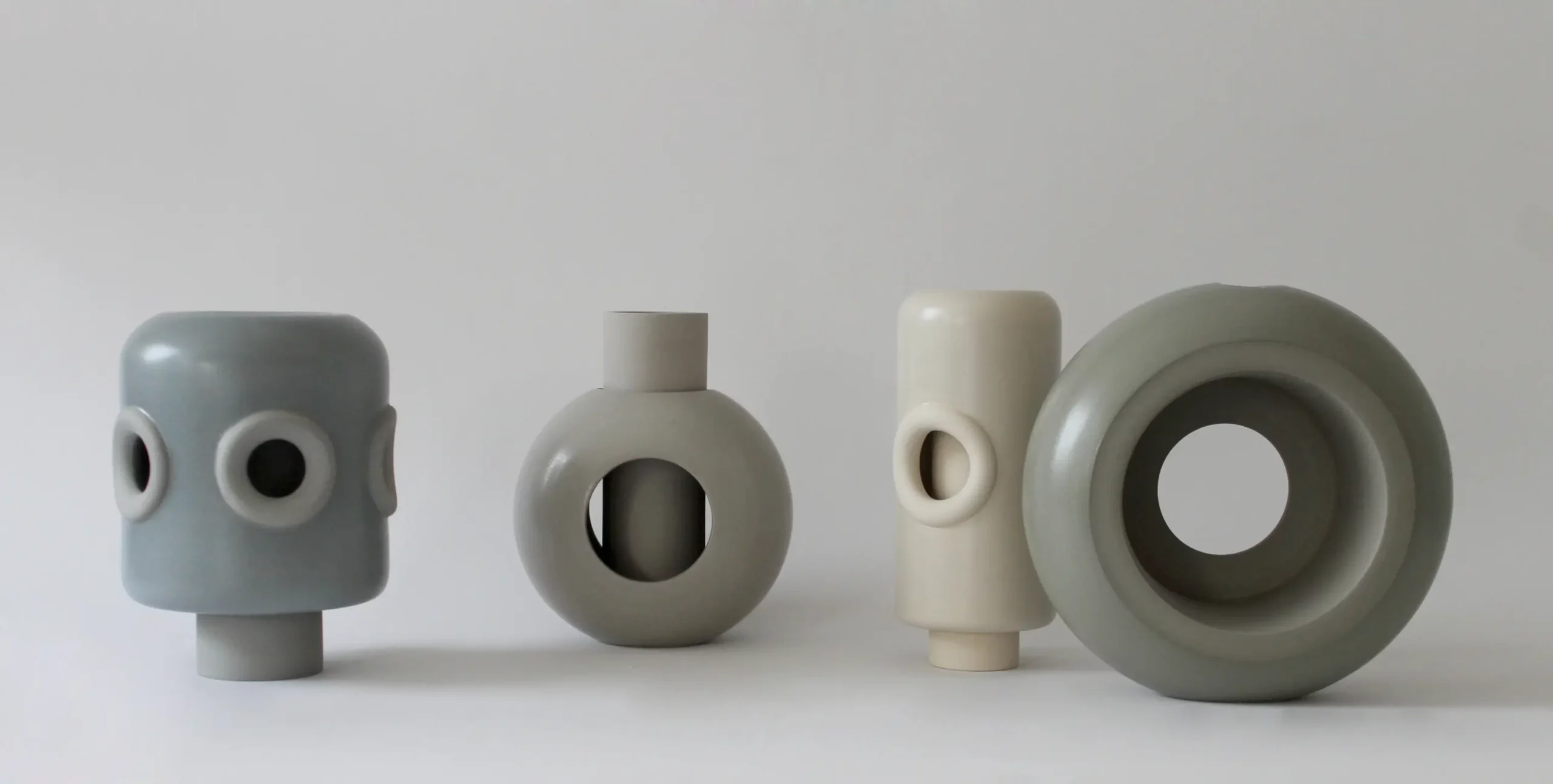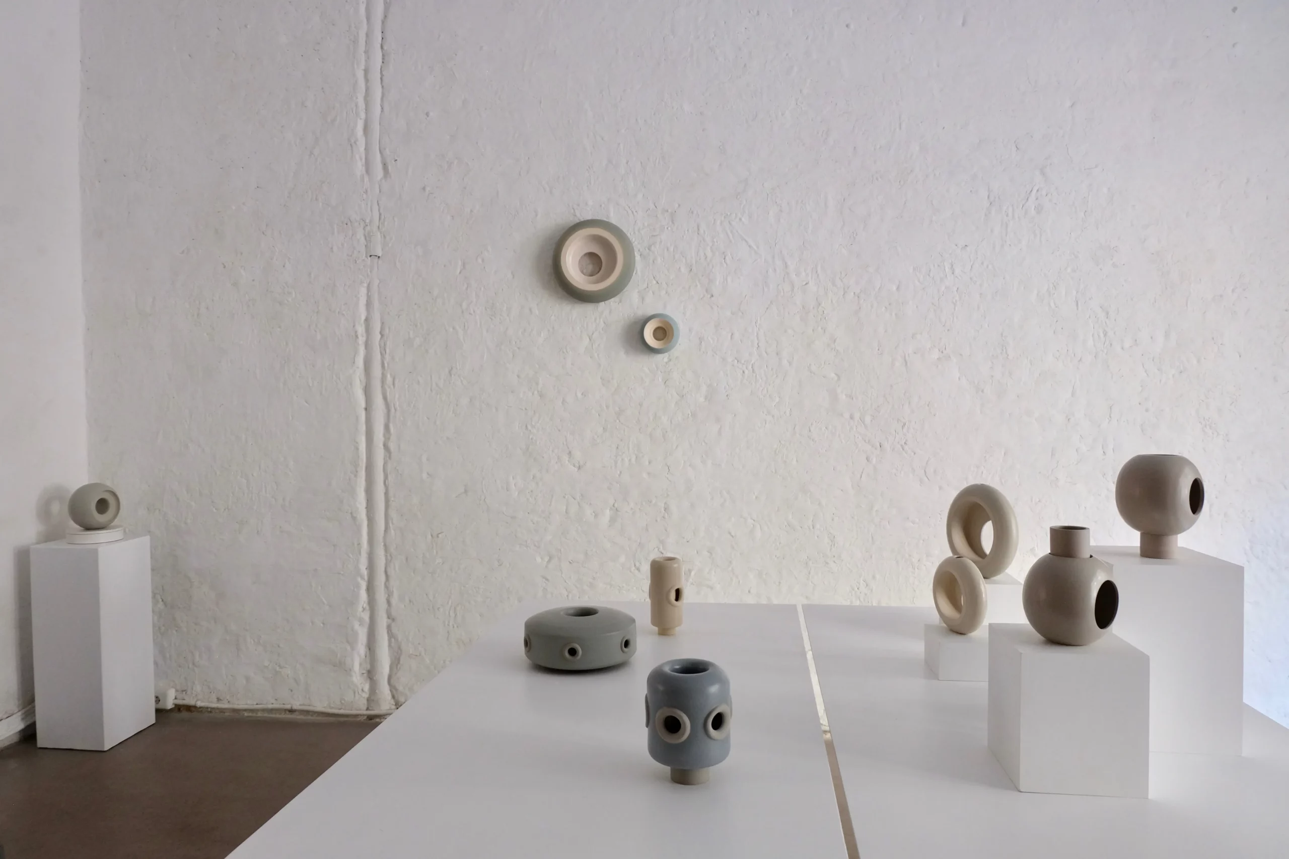 Pour son exposition ORBE, du latin Orbis, cercle, Hélène MORBU propose une éloge à la rondeur, à travers une collection de pièces uniques entièrement réalisée à la technique du tour.