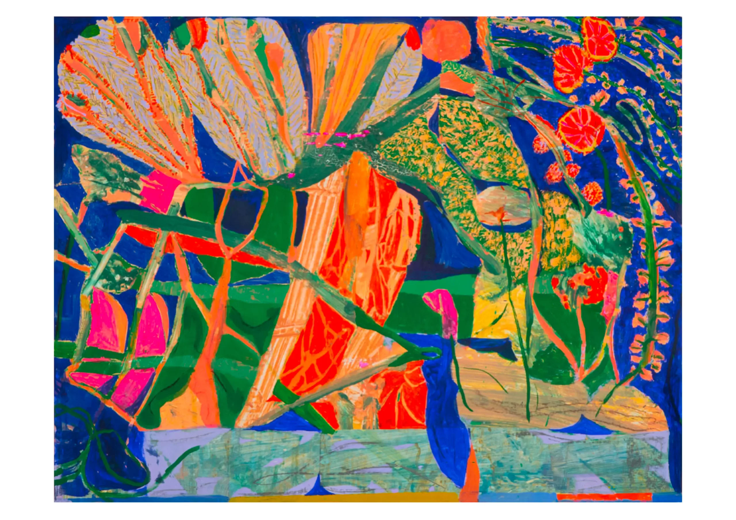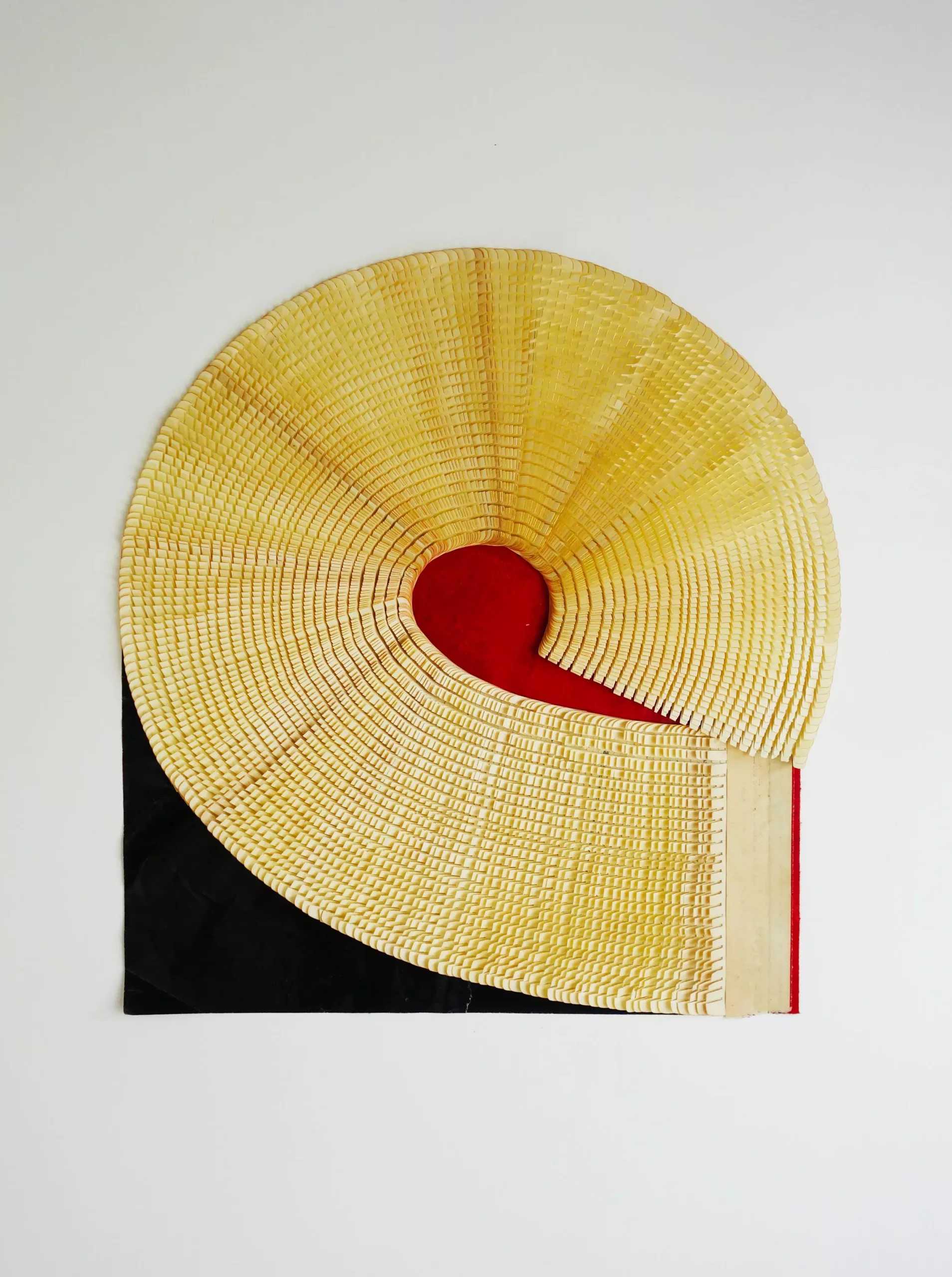 Pour cette nouvelle collaboration, Geoffroy présente une série de peintures grands formats sur papier mettant en scène des formes équivoques, peu définies, aux bords rêches parfois inachevés. Des objets y sont presque identifiables et semblent être doux et soyeux tels des rubans, fleurs, plantes et fruits mais qui là paraissent plutôt figés dans cette matière mate, sèche et tâchée. Comme si nous tentions de nous remémorer par les sensations, l’impression d’une fresque aperçue dans un lieu antique et épuisée par le temps.