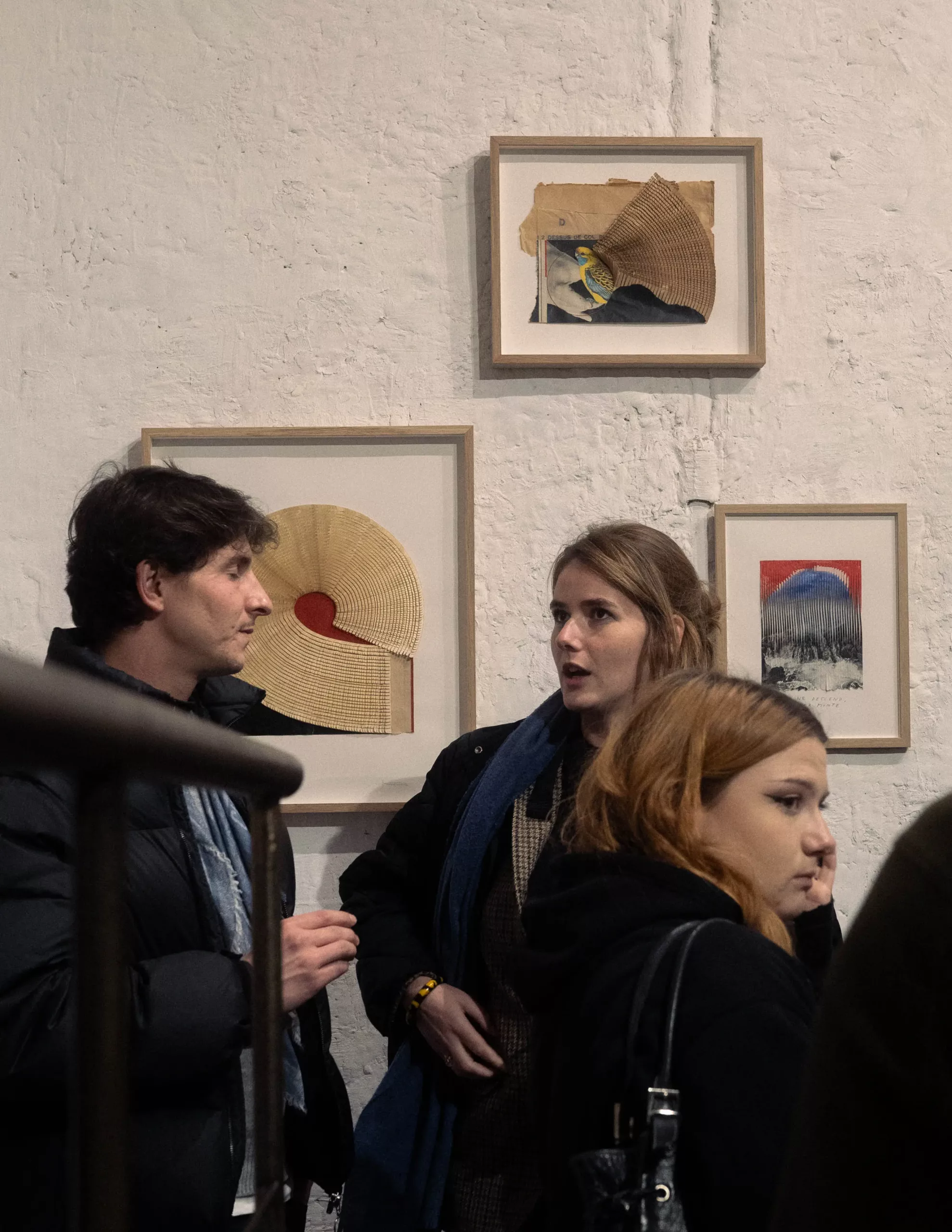 Pour l’évènement les complices et amis artistes ont réalisé à quatre mains deux oeuvres et présentent chacun leurs nouvelles créations, des collages pour Luc et quant à Geoffroy de la peinture sur papier.