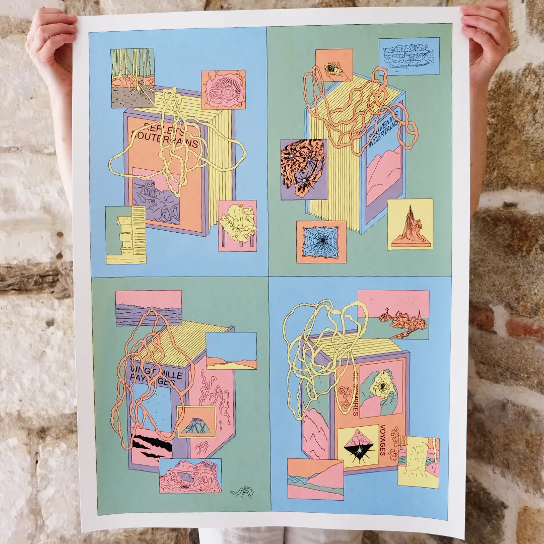 Séverine Bascouert est sérigraphe et artiste, Sammy Stein est artiste. Depuis dix ans, leur travail personnel ou en duo est une recherche autour des supports imprimés. Il prend la forme de livres, revues, zines, récits écrits, bandes dessinées, céramique.