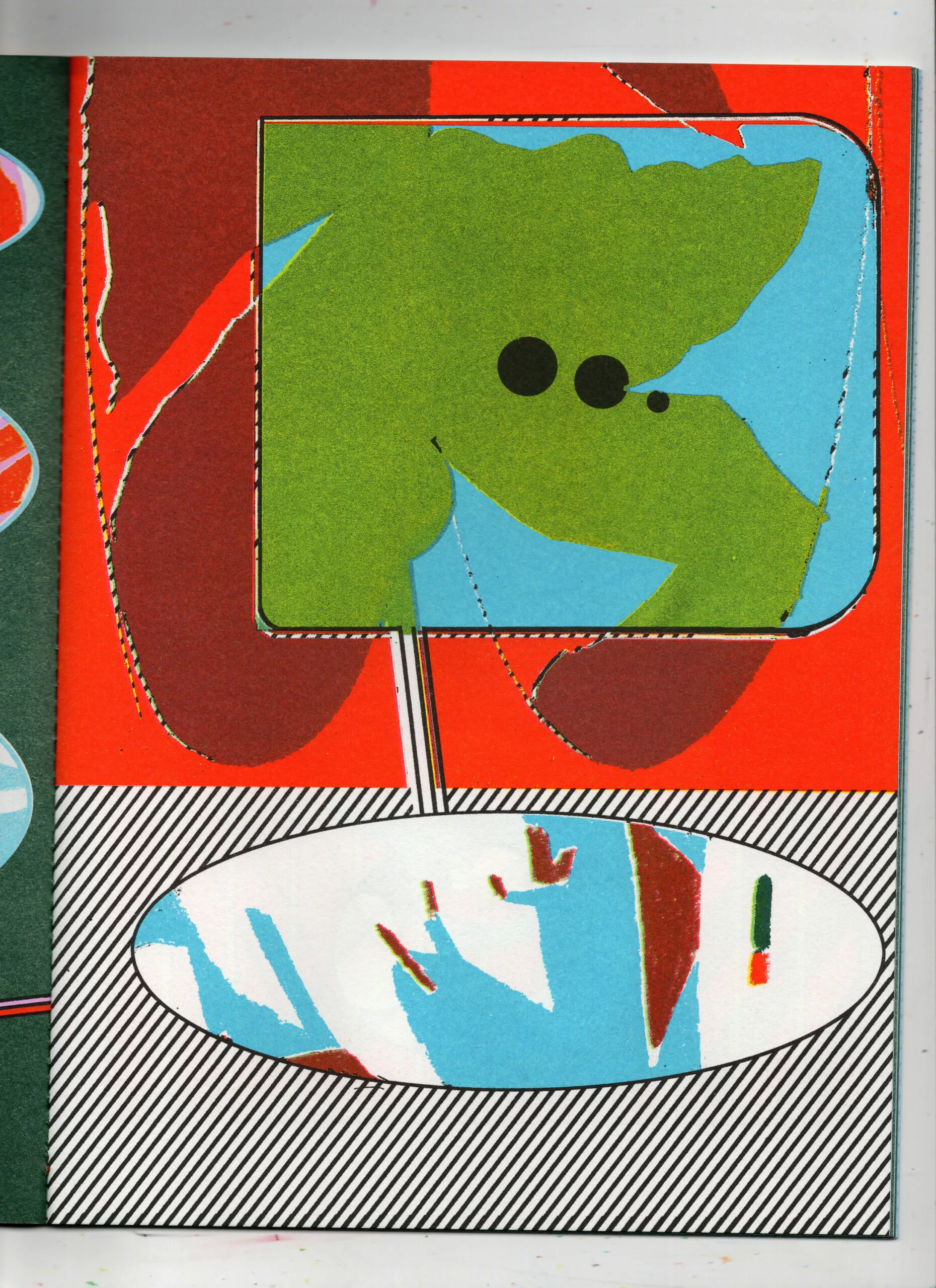 Ce choc visuel entre nature et technique fait écho au processus créatif même des deux artistes. Au moyen de collages et d’accidents numériques, d’ajout de trames et d’aplats, Besikian et Orand emploient l’ordinateur pour augmenter leurs premiers dessins. Des allers-retours entre le papier et l’écran avant que l’impression en Riso n’en brouille définitivement les indices et en harmonisant ces limites.