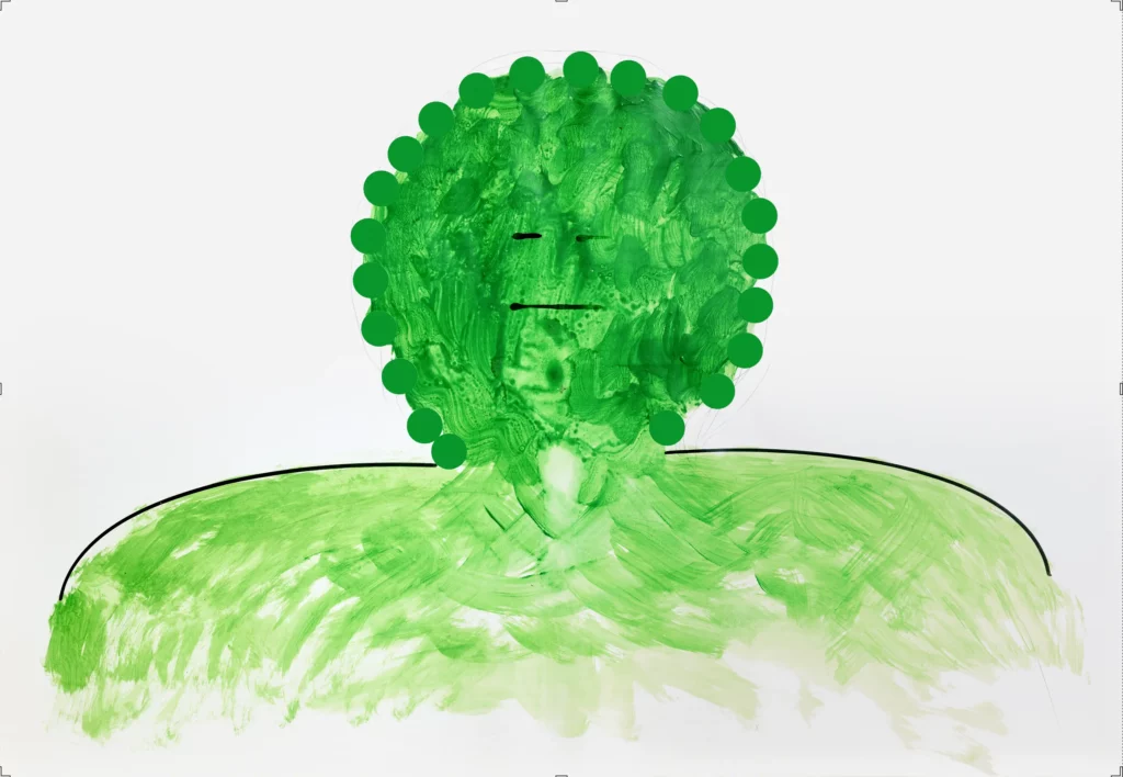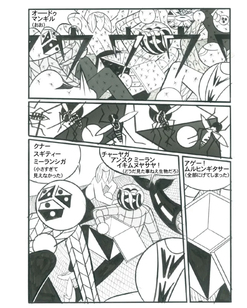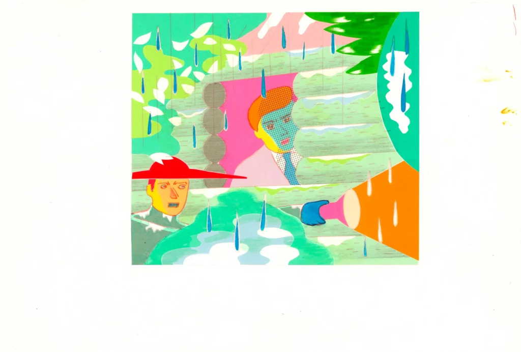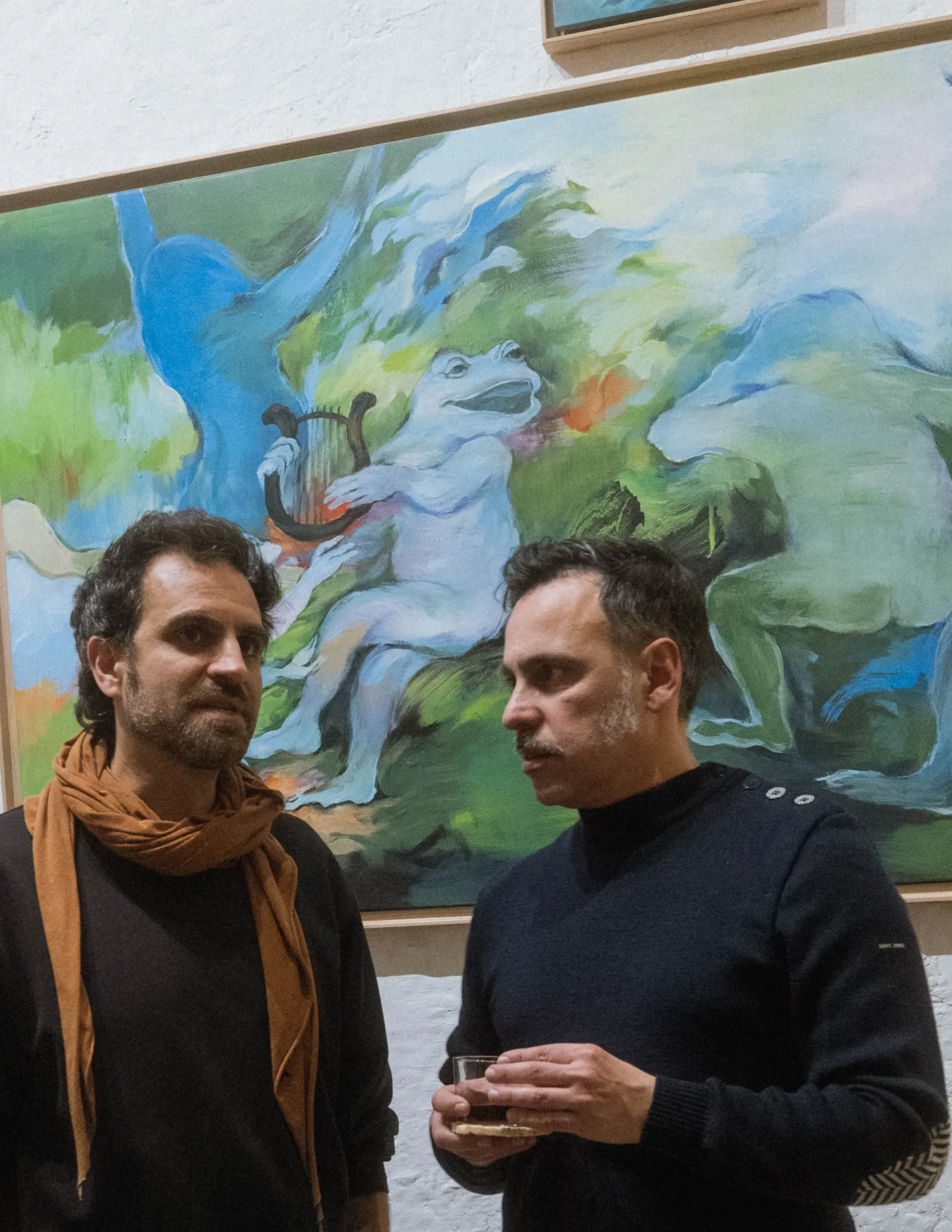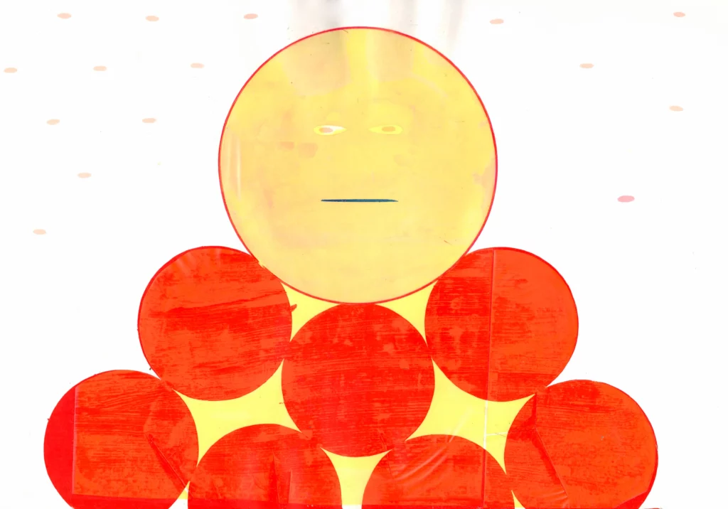 Elle s’empare de l’image d’Apollon et de ses pouvoirs divinatoires, et nous révèle un futur où les arts triomphent dans Fête (Apollon et les muses), à travers l’image de la grenouille, animal particulièrement vénéré au Japon, qui apporte chance, protection et prospérité.