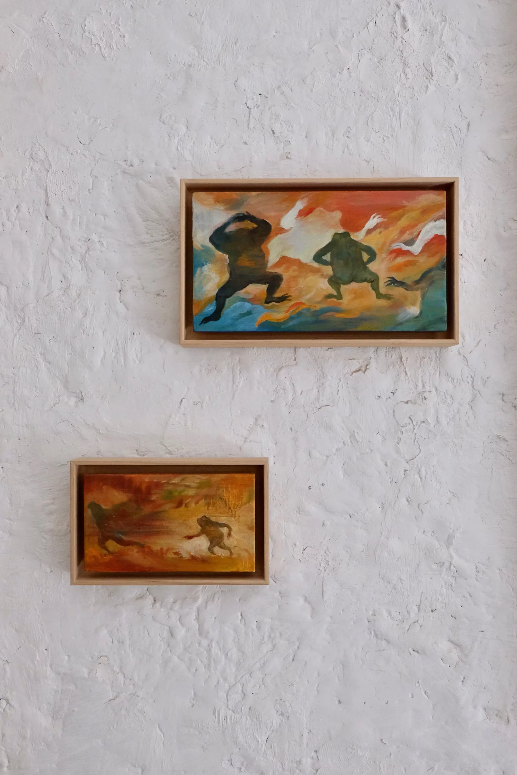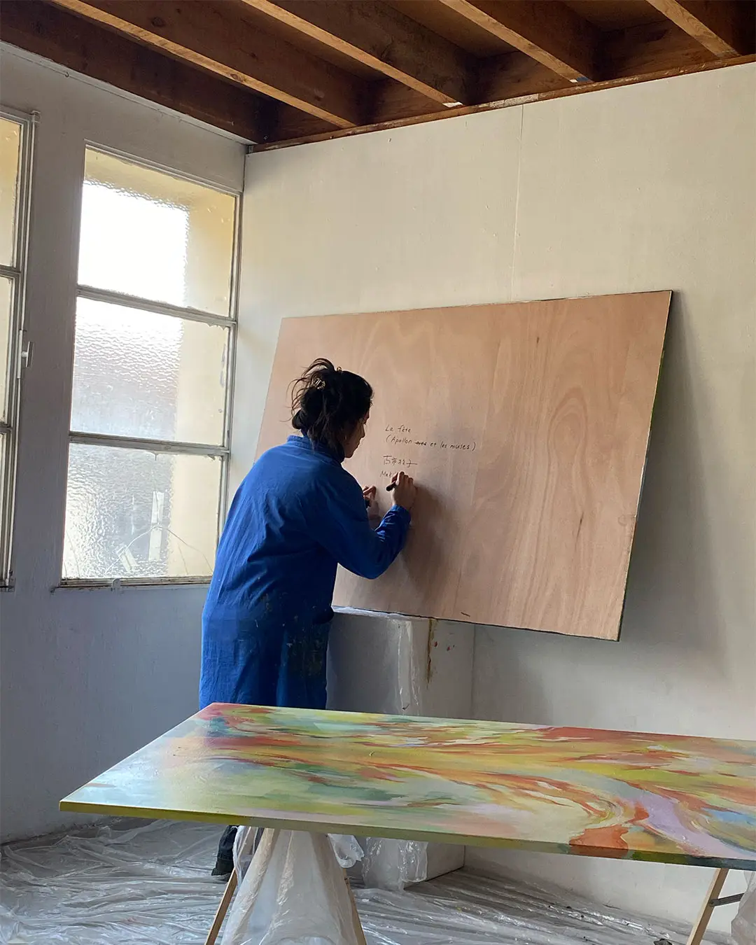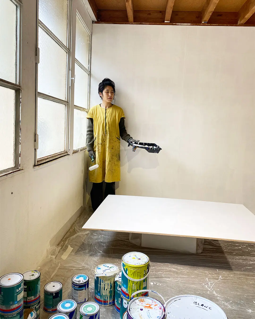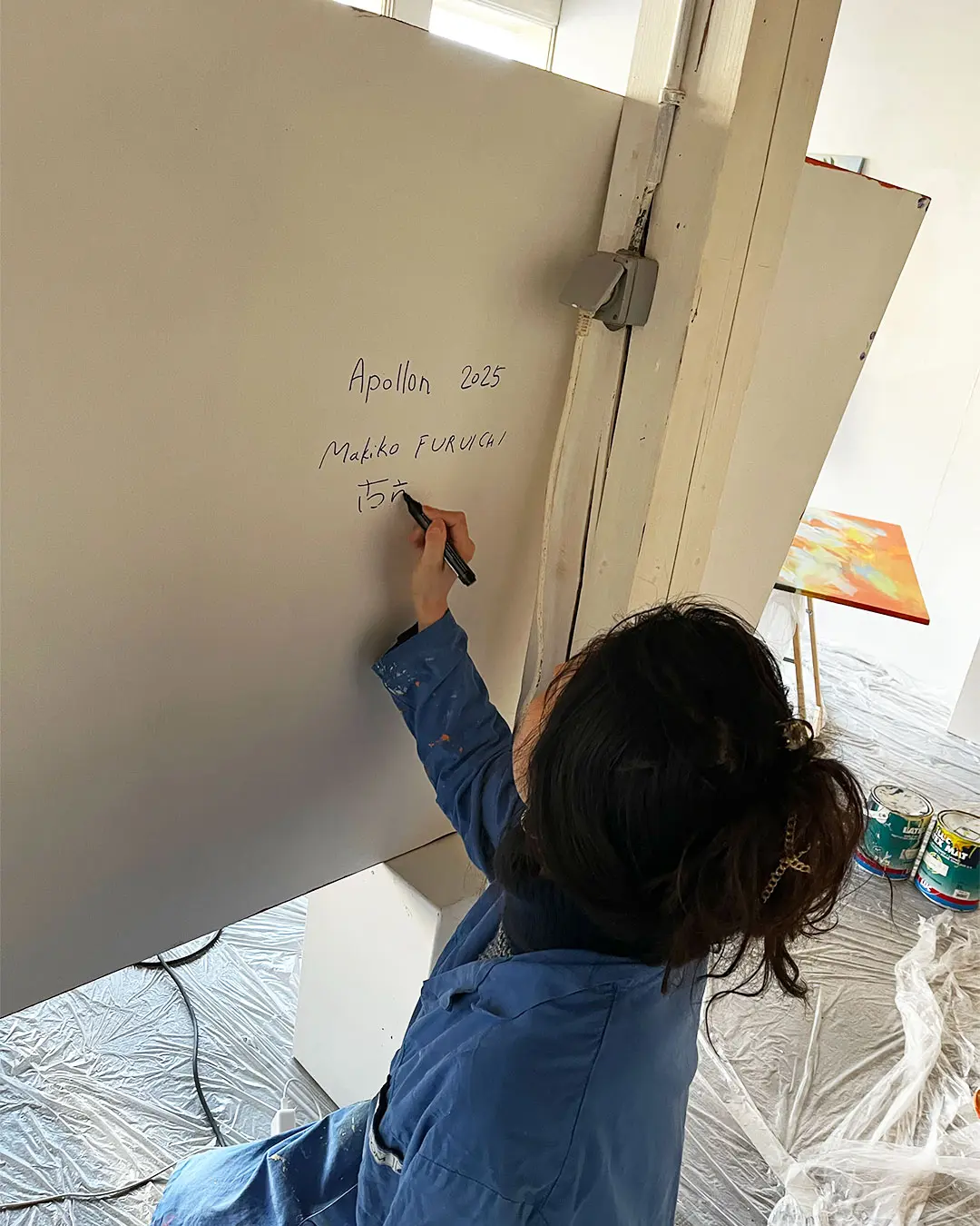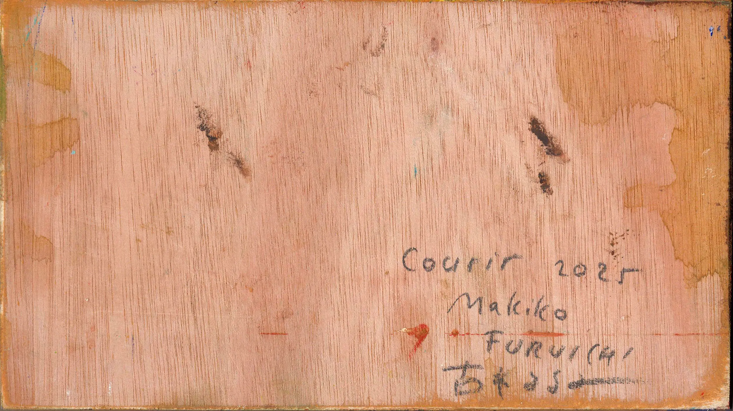 Pour préparer sa deuxième exposition à la Galerie MIRA, Makiko est reçue en résidence de création aux Ateliers de la Ville en Bois à Nantes. Elle réalise des peintures acryliques grands formats sur bois, en écho à une nouvelle série de petites peintures à l’huile.