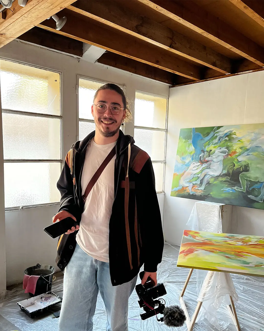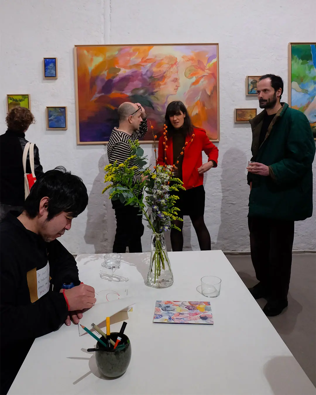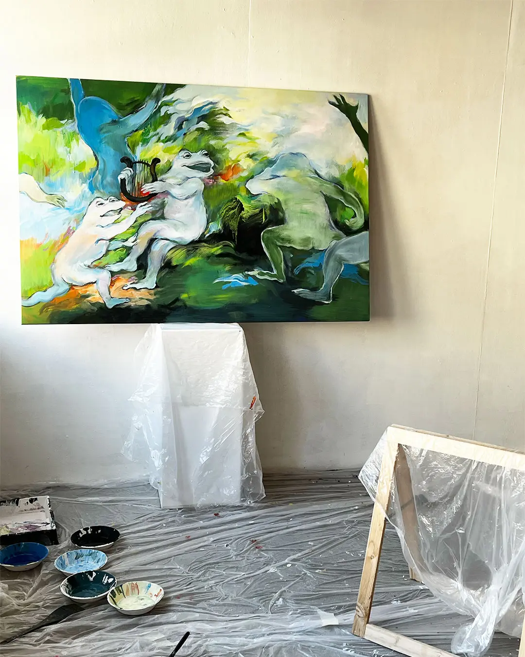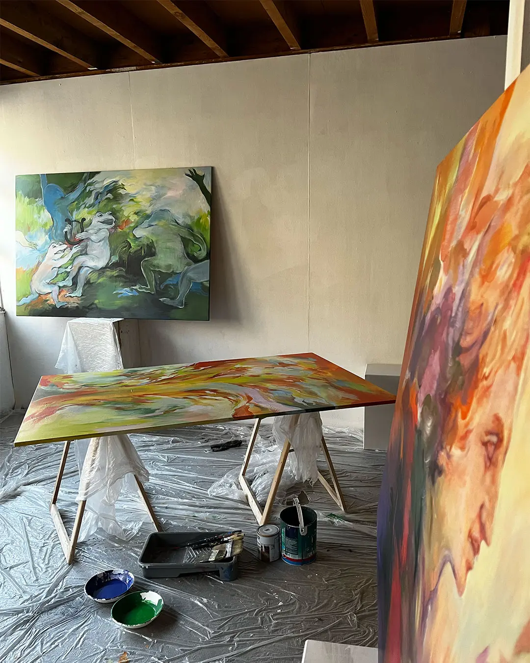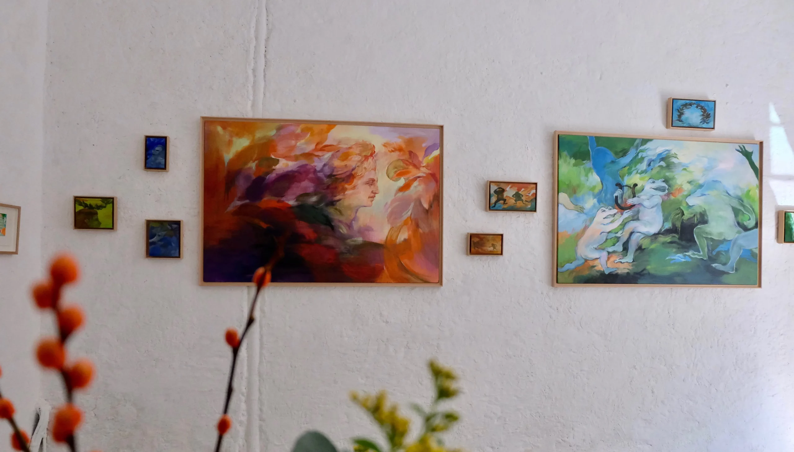 Pour préparer sa deuxième exposition à la Galerie MIRA, Makiko est reçue en résidence de création aux Ateliers de la Ville en Bois à Nantes. Elle réalise des peintures acryliques grands formats sur bois, en écho à une nouvelle série de petites peintures à l’huile.