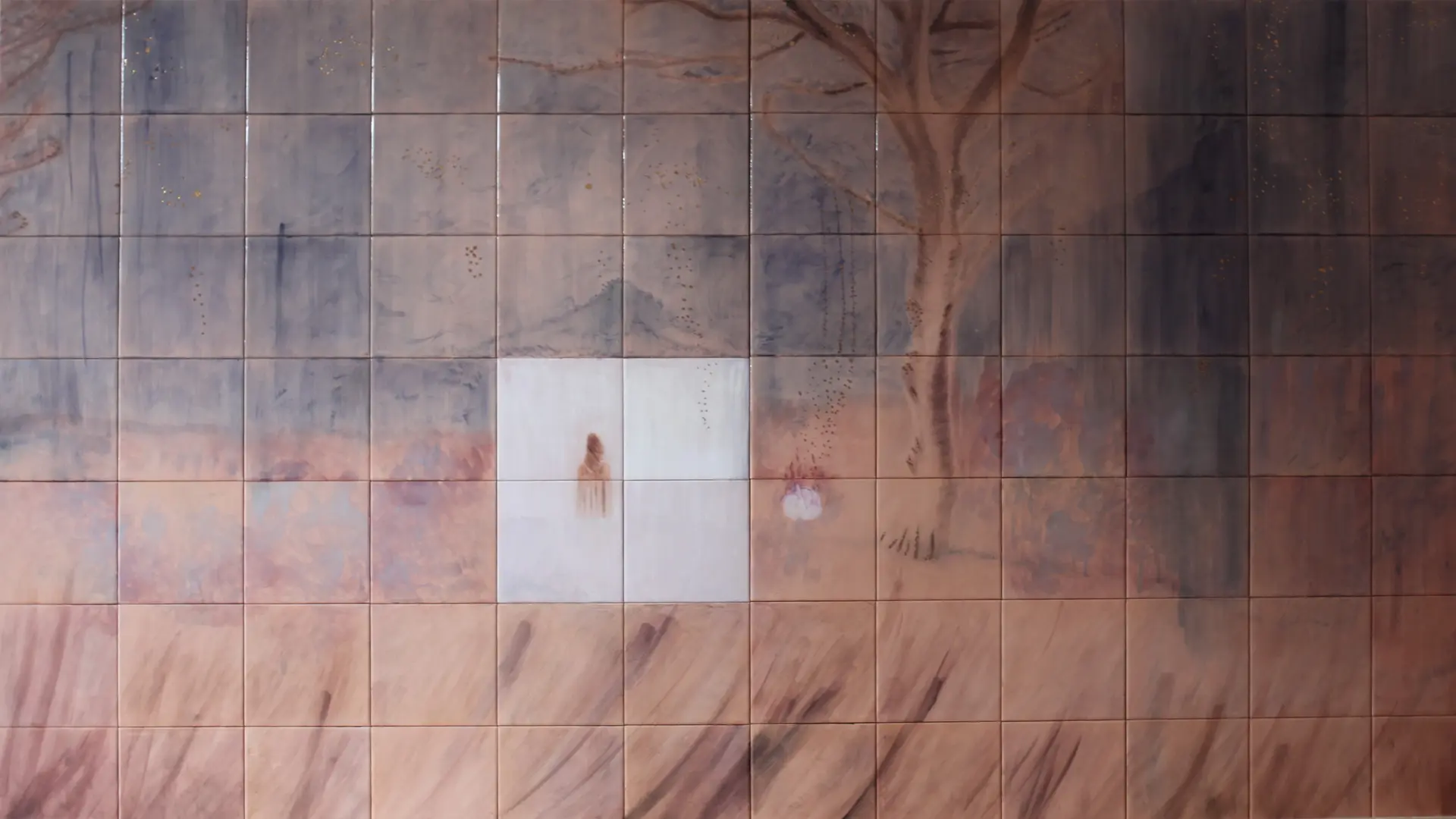Lors d’une résidence au Brésil, dans la forêt de Boicuganga, l’artiste opère une transition vers la céramique, découvrant une nouvelle manière d’explorer ces transformations, cette fois par le feu et les émaux. La peinture sur faïence devient son médium privilégié, un moyen d’explorer ses racines luso-descendantes tout en adoptant une approche contemporaine. À travers les émaux et le feu, elle poursuit son exploration de la transformation des couleurs et des textures, un processus qui rappelle les révélations photographiques opérées par la chimie.