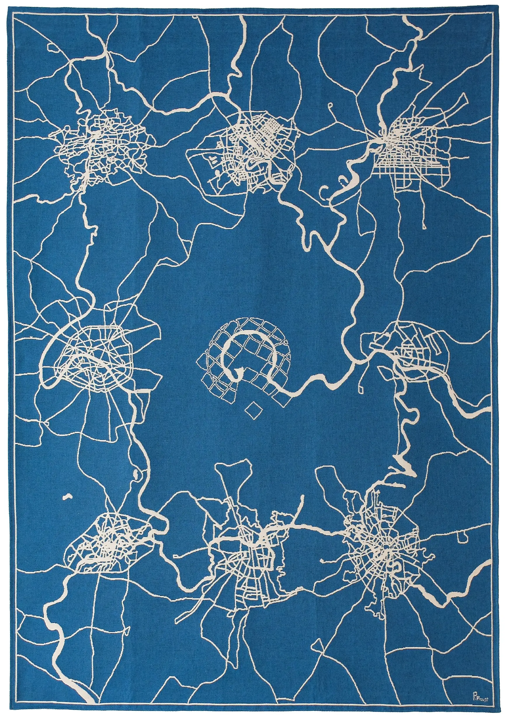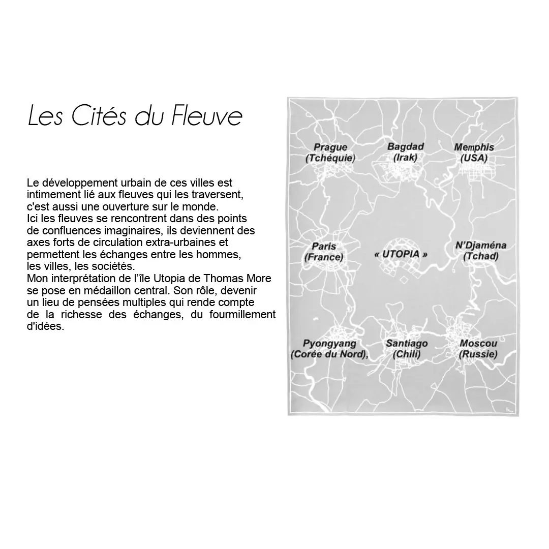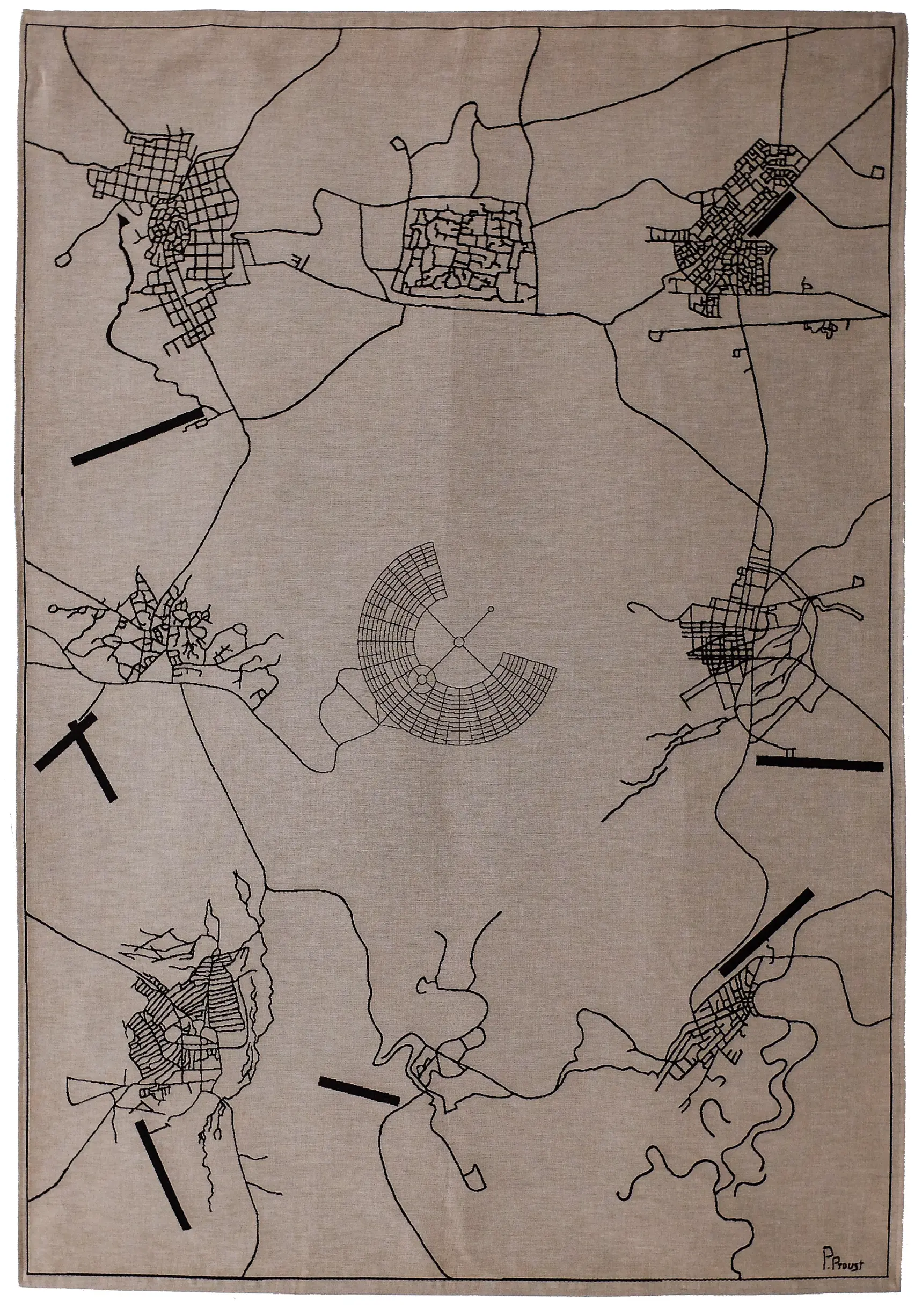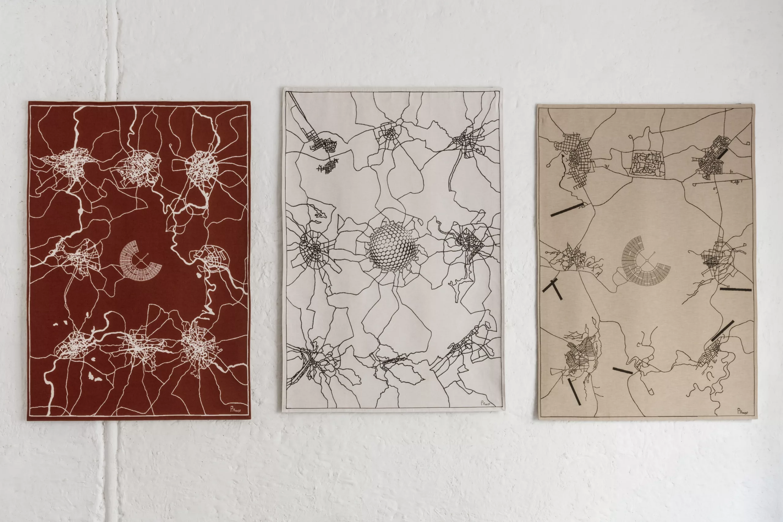 “Retisser les liens entre les hommes. Outre les murs, les frontières et les barrières, souligner, réaffirmer que nous vivons dans un monde unique et qu’il existe depuis longtemps des interconnexions entre les individus, les peuples, les cités en sont les épicentres.” Cette pensée humaniste, l’artiste la présente et l’exprime dans sa nouvelle série de tapisseries “ Citées tissées “ présentée à la Galerie MIRA pour son exposition.