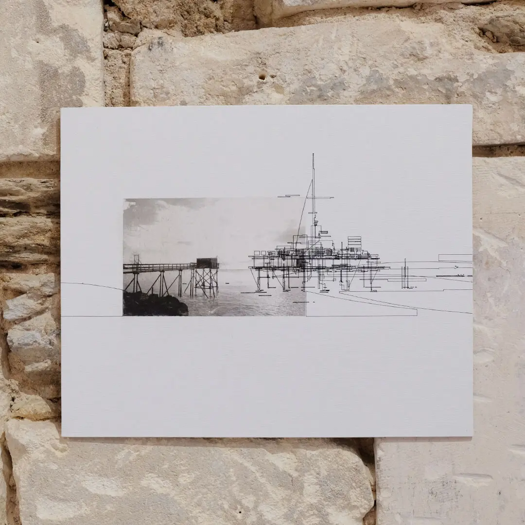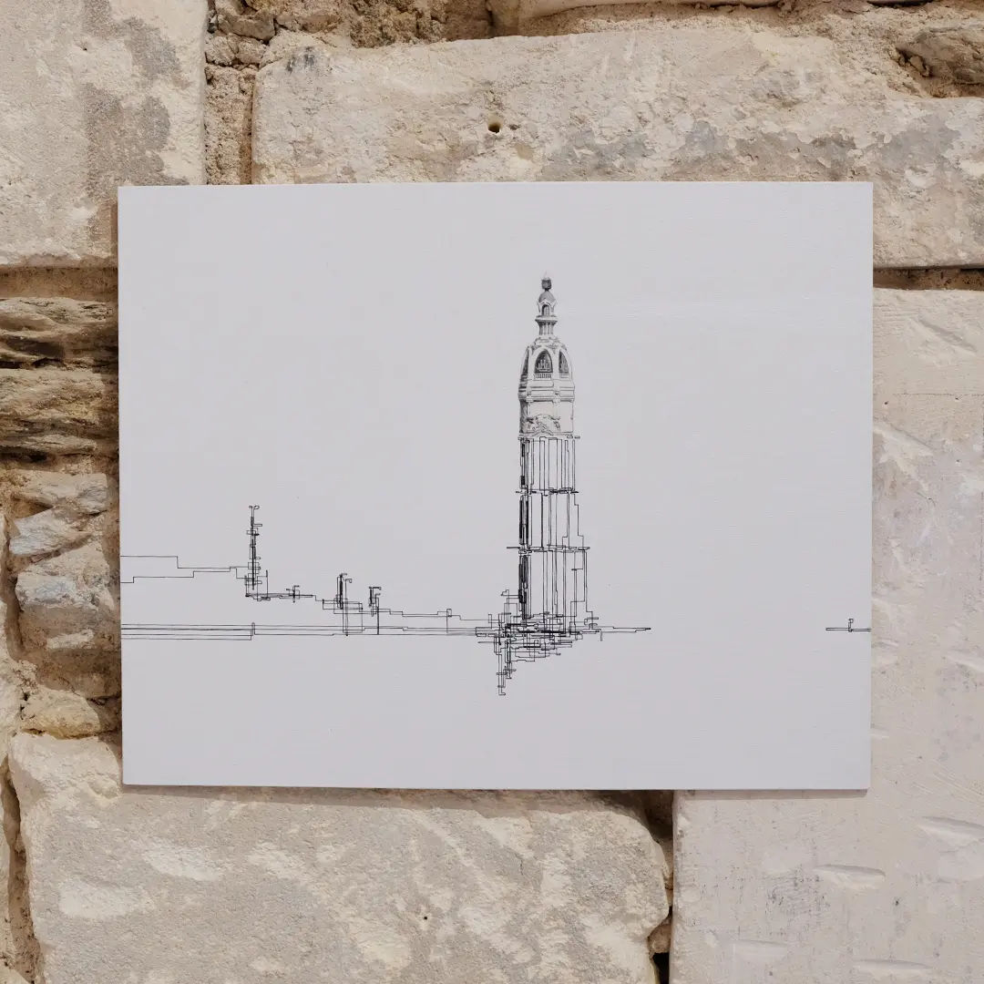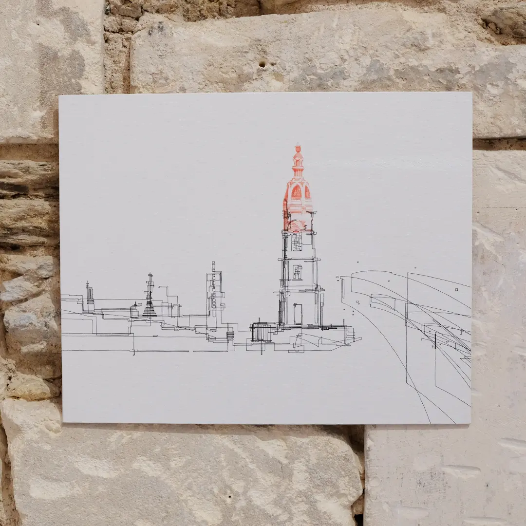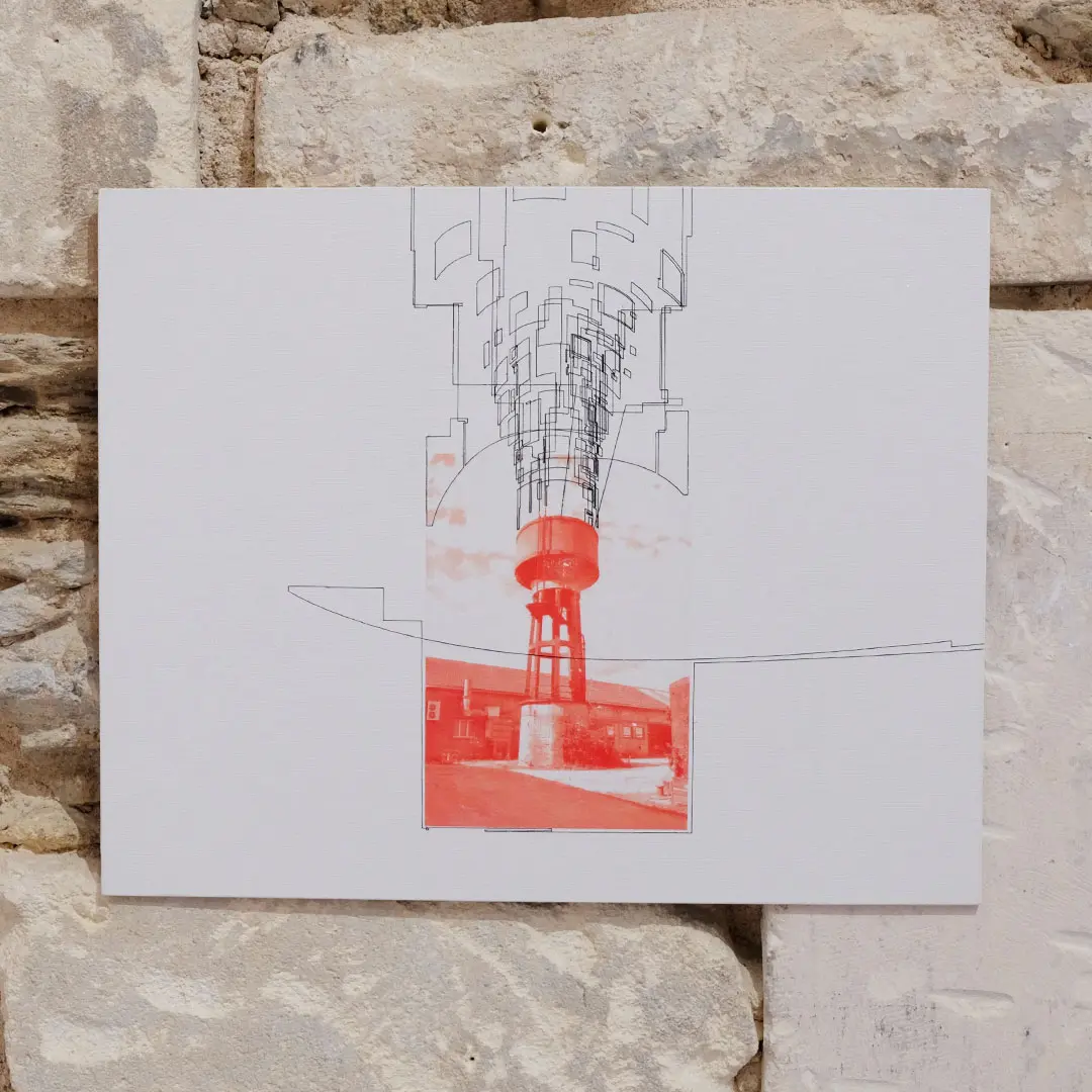 Les dessins exposés, réalisés en technique mixte, convoquent le patrimoine architectural industriel de notre région, et dans ses nouvelles linogravures, l’artiste nous propose une autre lecture de l’urbanisme de la ville de Nantes, ludique et utopique.