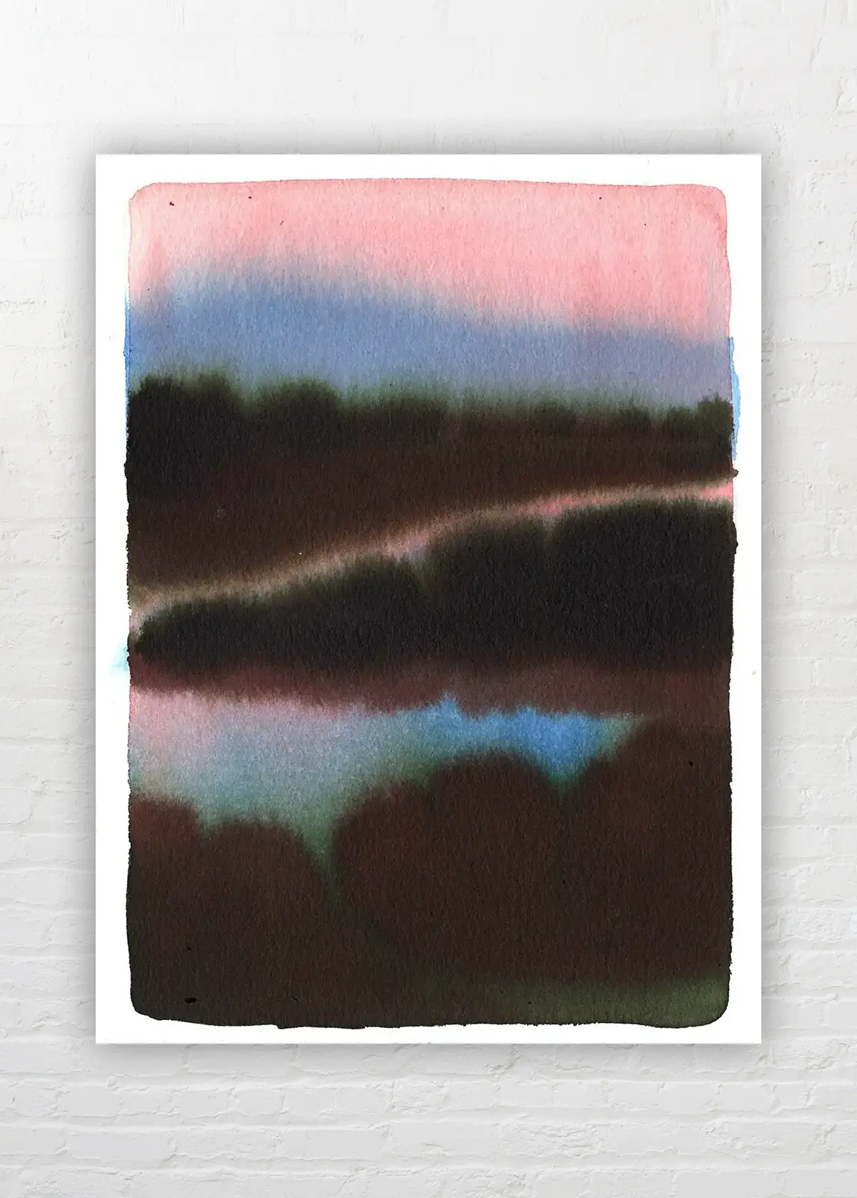 Dans les paysages de Magali Cazo, les encres se diffusent dans le papier sans limites, sans frontières. Ici tout est contraste et reflets, la masse de la terre et la légèreté de l’air, et nous sommes de passage comme le soleil qui se lève puis se couche, avant de recommencer…