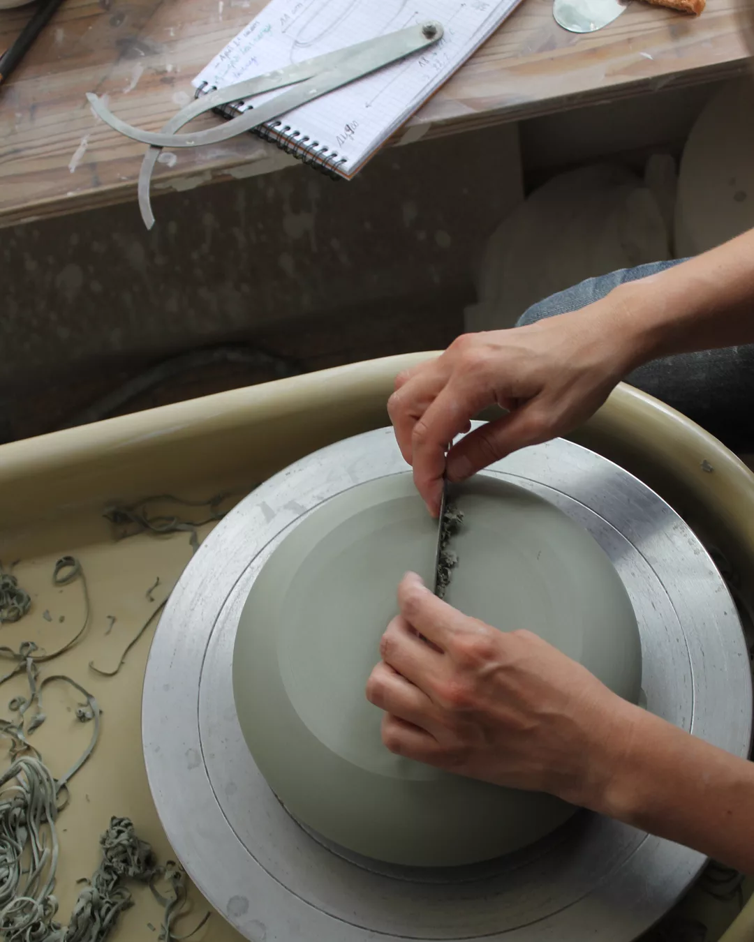 Pour son exposition ORBE, du latin Orbis, cercle, Hélène MORBU propose une éloge à la rondeur, à travers une collection de pièces uniques entièrement réalisée à la technique du tour. Dans une quête de recherche formelle, l’artiste joue avec les cercles concentriques et excentriques, avec le visible et l’invisible, les vides et les pleins, la lumière et l’ombre.
